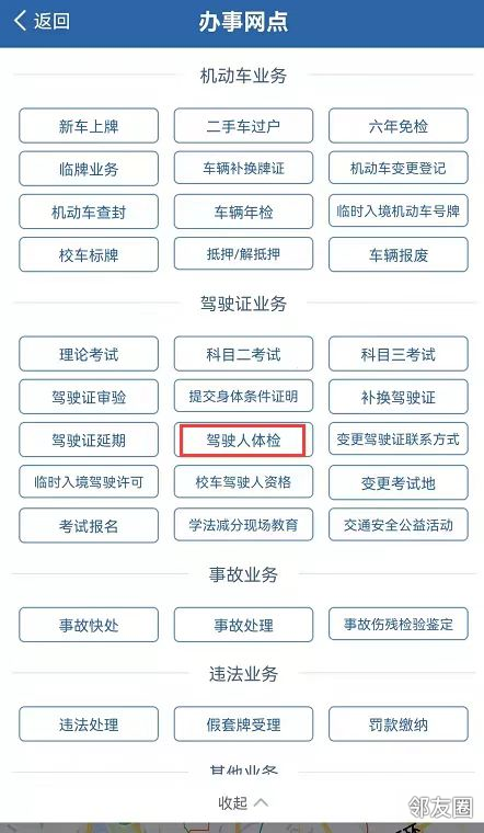 如果您的驾驶证即将到期,可以选择使用交管12123APP提交换证申请,并且进行体检就可以了。目前,交管12123APP服务中心中可以查询距离您最近的可以办理驾驶人体检的医疗机构 (按照下图进行操作),在体检完成后医院会自动将体检数据发送至交管部门。