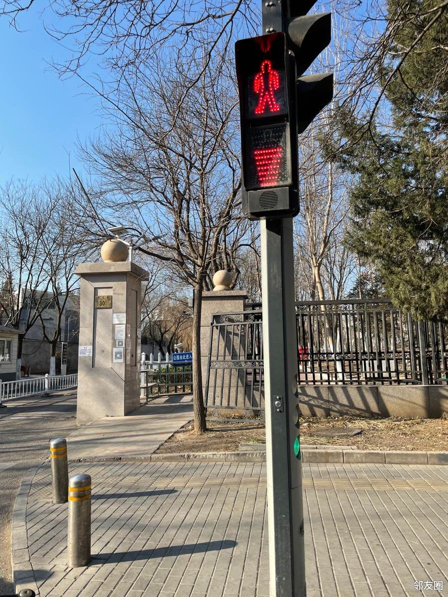 东西向的大直道,到头就是北苑路,要在这个路口北侧30米的人行横道过马路