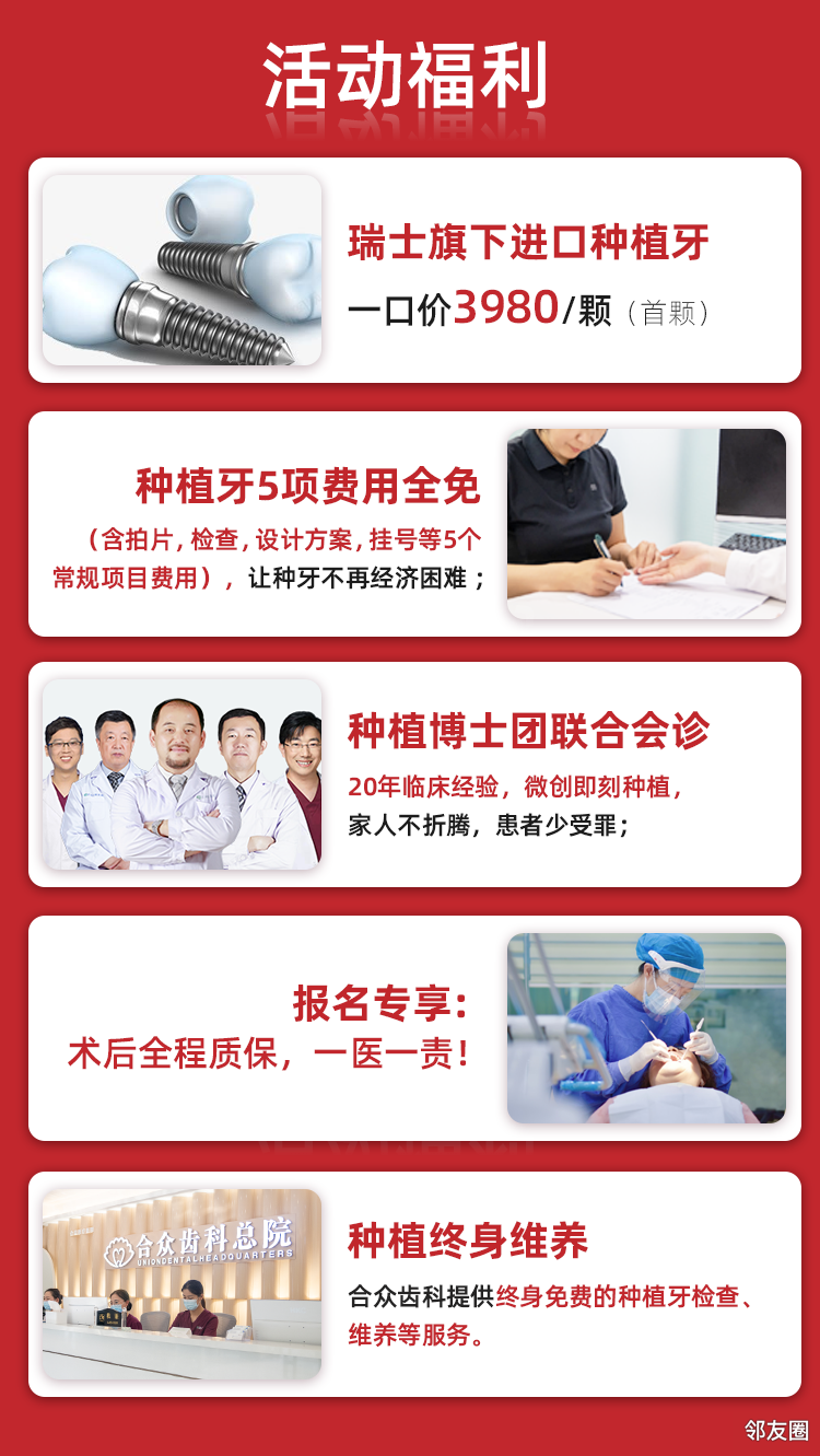 种植牙5项费用全免,