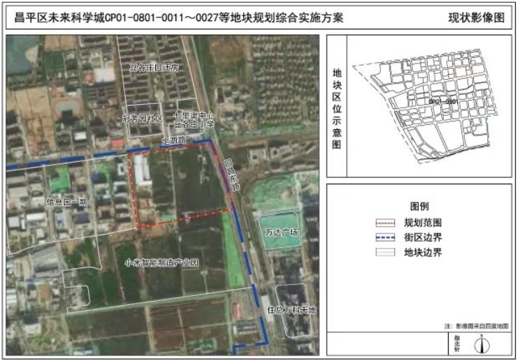 为贯彻落实《昌平分区规划(国土空间规划)(2017年一2035 年)》和《北京昌平区巩华城-朱辛庄 CP01-0501、0701、0801 街区控制性详细规划(2021年一2035年)(街区层面)》,推动未来科学城职住平衡发展,特综制本规划综合实通方案。具体用地功能和规模如下∶