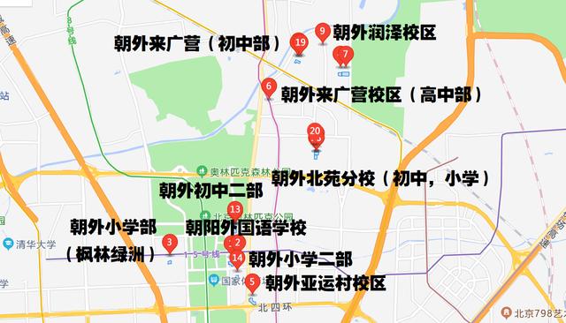 其实分校只需要介绍朝来分校和北苑分校,因为这两个是直接收编或者天高皇帝远无法得到朝外精髓光芒照耀的。对于统称为总校区的几个亚运村,豹房,慧忠里,枫林绿洲等校区基本上都是可以看成是嫡系校区了。
