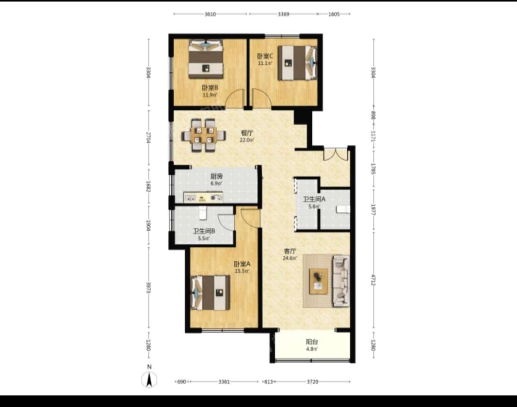 出租万象新天三区3室2厅2卫151平米10000元/月住宅