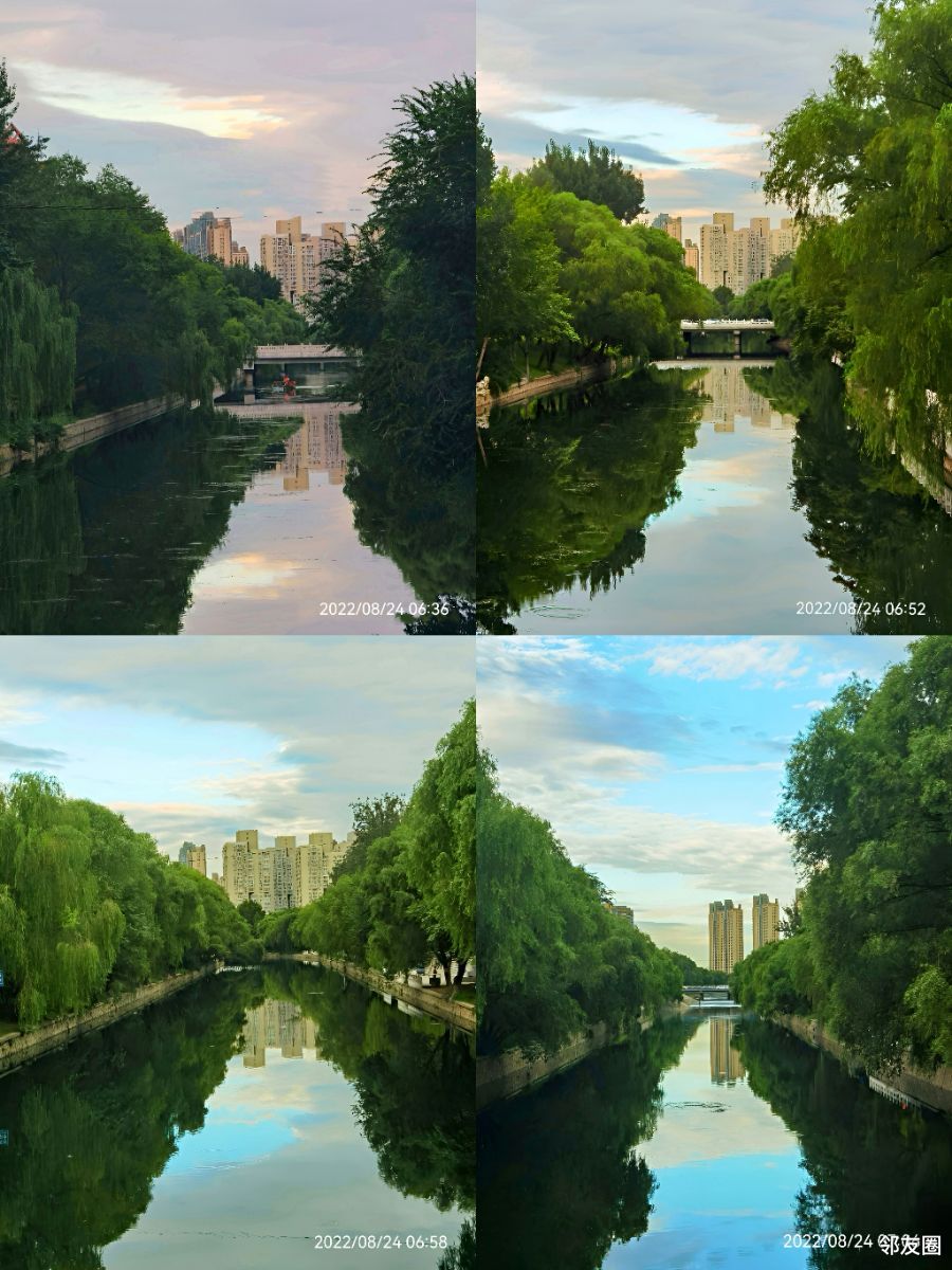 天空放晴的全过程:拍照依次是在:1:北小河望京东路桥上、2:北小河启阳路桥上、3:北小河广泽路桥上,4:北小河河荫中路桥上。