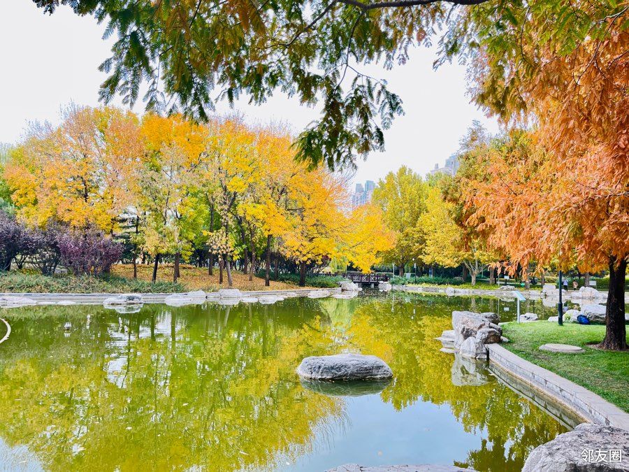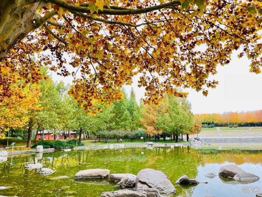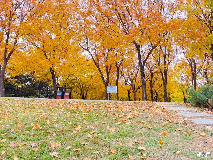 北小河公园进入深秋景观,枫树、黄栌叶变红了,银杏叶全黄了,很美,不过,这样美景基本维持不多久。