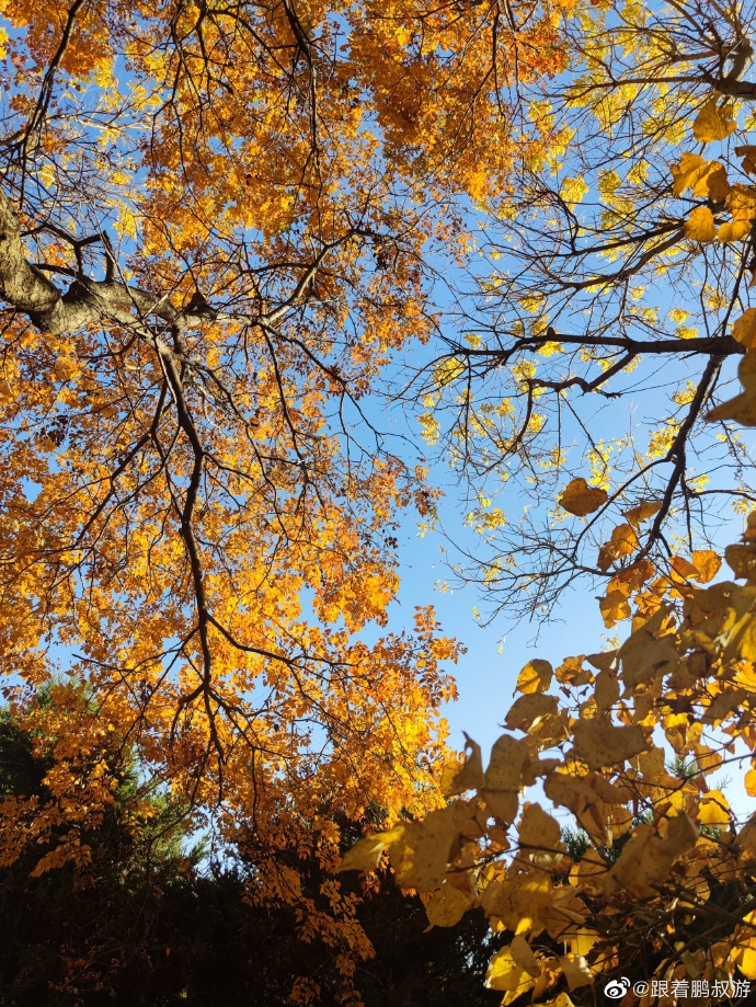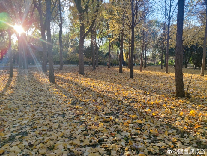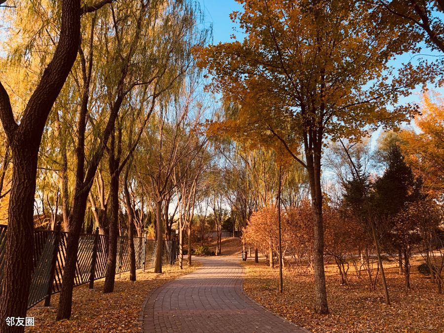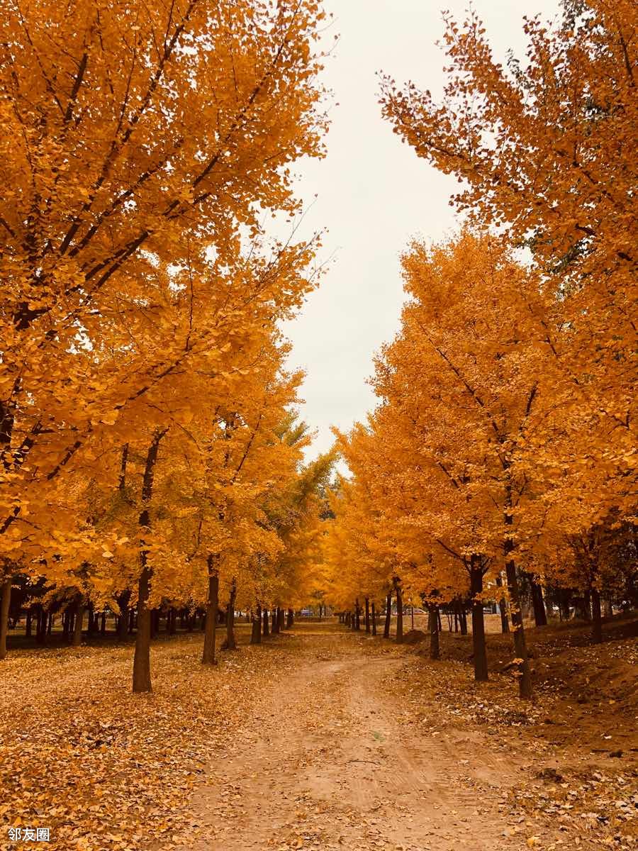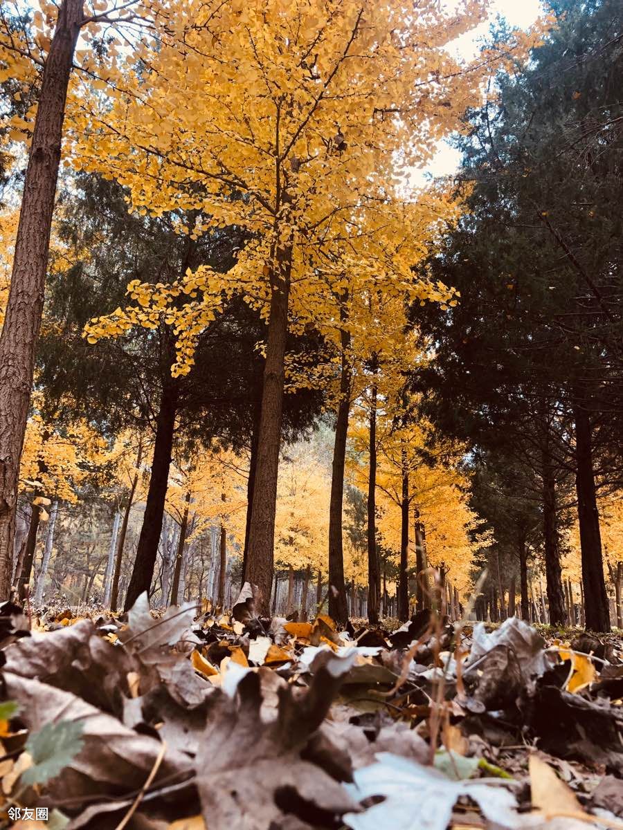 蓝天白云黄叶,漂亮,能明显感觉到了秋天的尾巴。北京的秋天就是这么短暂。除了银杏林,别忘了还有一片人工湖,有漂亮的芦苇荡和湖中凉亭。