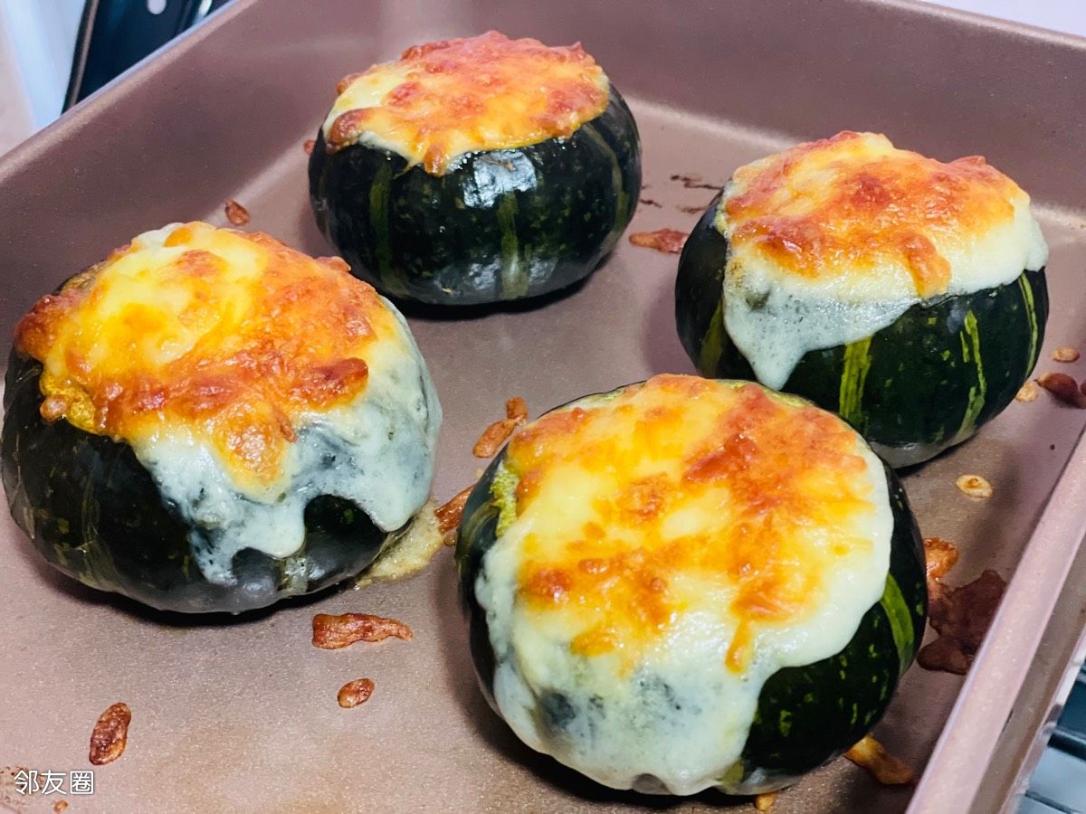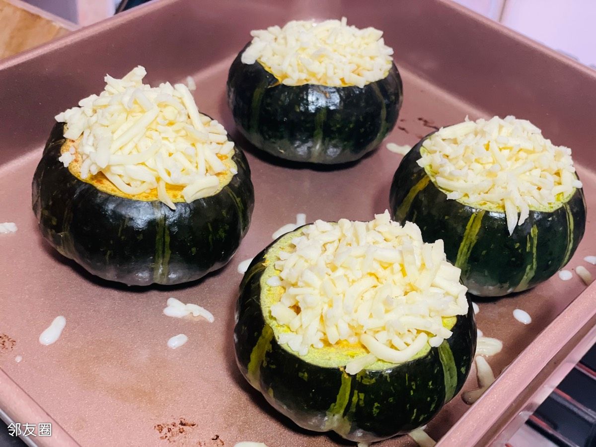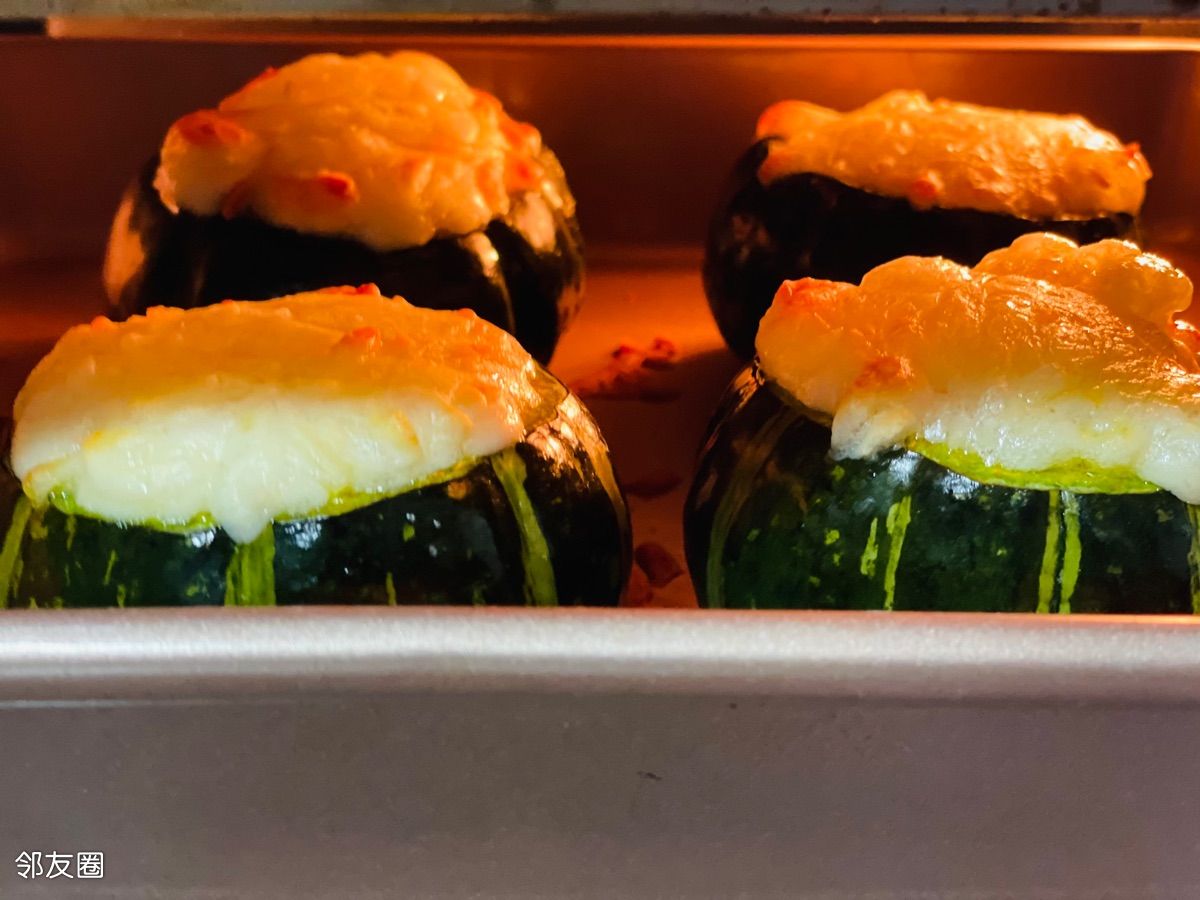 烤15分钟后,加芝士和松子或者随便你喜欢的