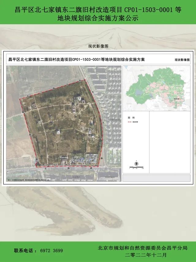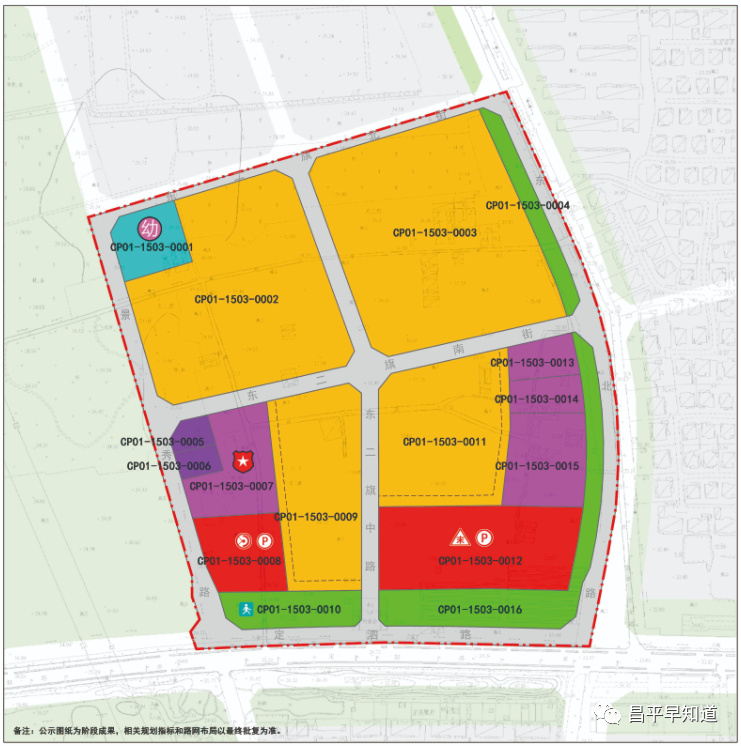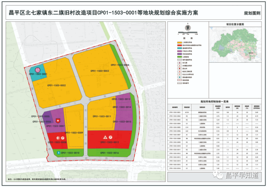 昌平的亲们,近日区域规划又传新进展,这次是北七家镇的东二旗旧村改造项目,CP01-1503-0001等地块规划综合实施方案公示(公示期间30天)。这处总面积30.72公顷的区域,将建设为居住,商业及教育一体的新区域,十分值得期待!为贯彻落实《北京城市总体规划(2016年-2035年)》《昌平分区规划(国土空间规划)(2017年-2035年)》《北京未来科学城成果转化基地(北七家)CP01-1501-1503街区控制性详细规划(2021年-2035年)(街区层面)》,提高区域公共服务支撑保障能力,推动职住平衡,北七家镇政府组织编制了《昌平区北七家镇东二旗旧村改造项目 CP01-1503-0001 等地块规划综合实施方案》,本实施方案涉及用地位于北七家镇,北至东二旗北街,南至定泗路,西至景秀路,东至东北路,总用地面积约30.72公顷,总建筑规模约26.64万平方米(具体指标见规划图则)
