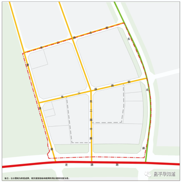 道路方面也给出了全新道路名,两条东西走向道路最北侧为东二旗北街,中间为东二旗南街;三条沟通南北道路最东侧为东北路(现状道路名称未变),中部为东二旗中路,西侧为景秀路(新命名道路):