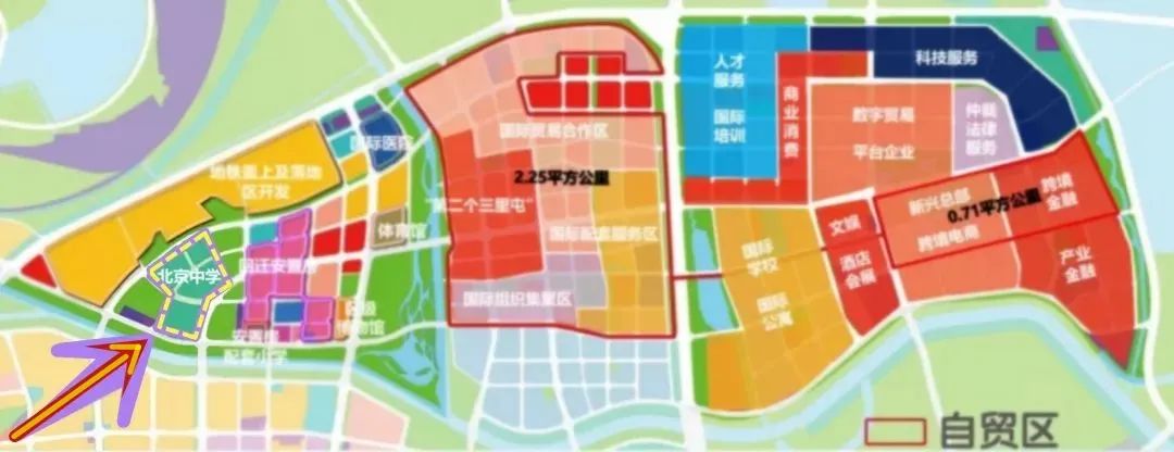 综合此前相关资料了解到,北京中学东坝北校区位于东坝北西区西南侧。2020年9月,中国(北京)自由贸易试验区正式挂牌,并明确介绍了北京自贸试验区三个片区的具体选址。其中,金盏国际合作服务区中的2.96平方公里被划入北京自贸试验区国际商务服务片区范围,在公布的自贸区规划图中可以明确看到北京中学的位置。