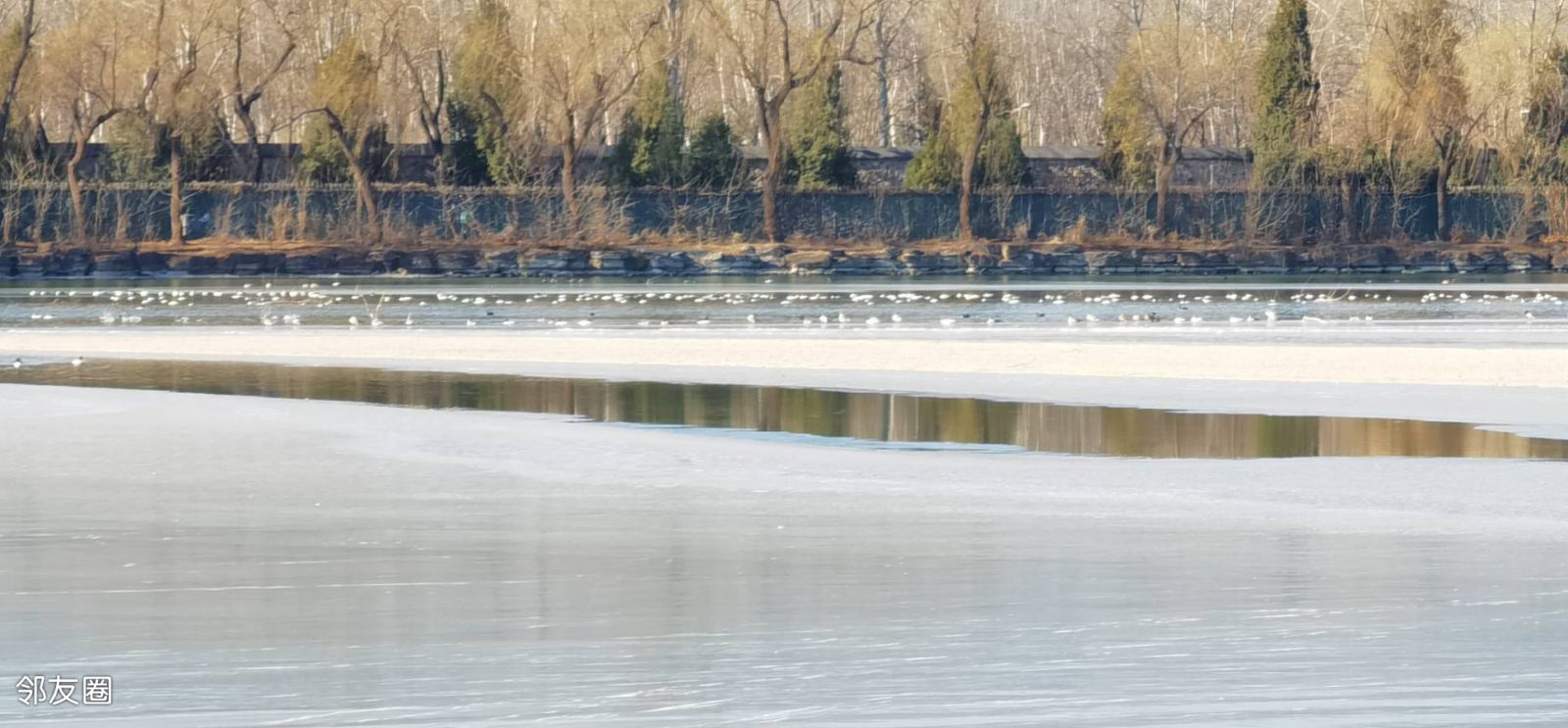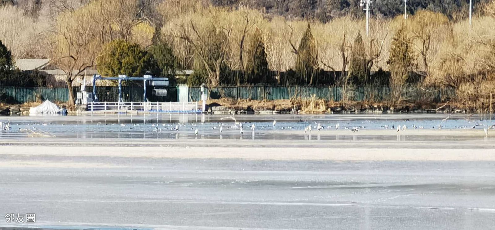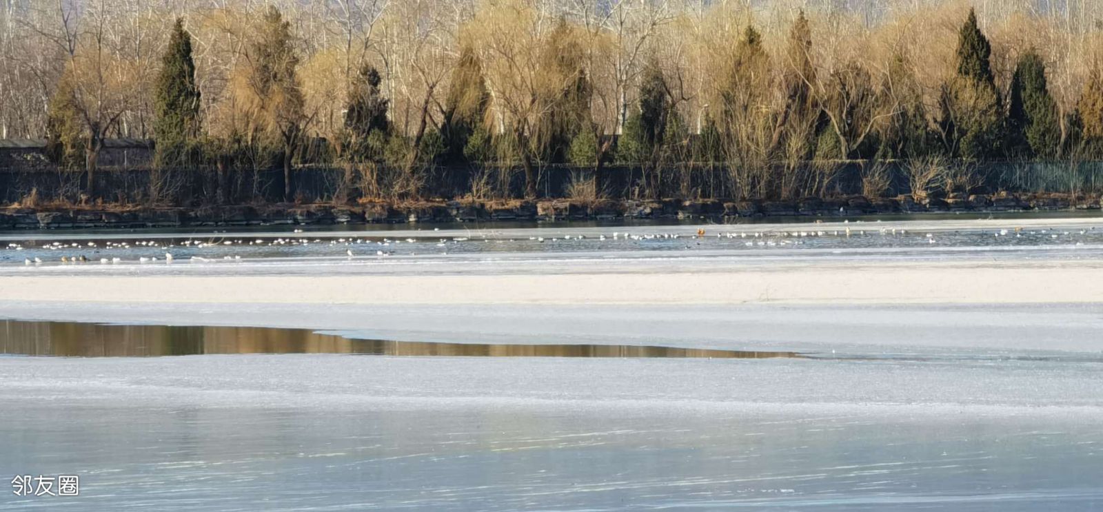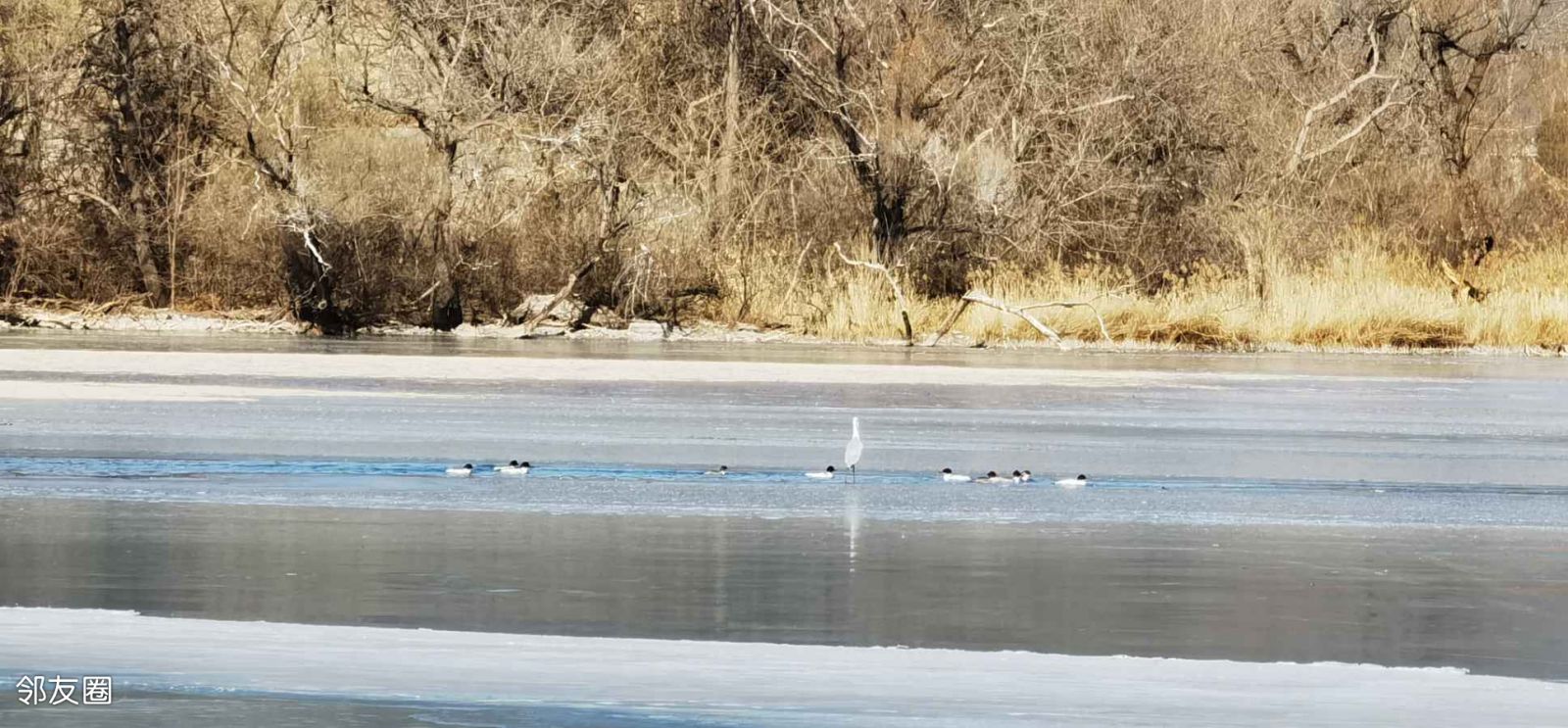 因为不是专门去看禽鸟的,所以没带望远镜,举着手机远远看去一大片禽鸟在浅水处!