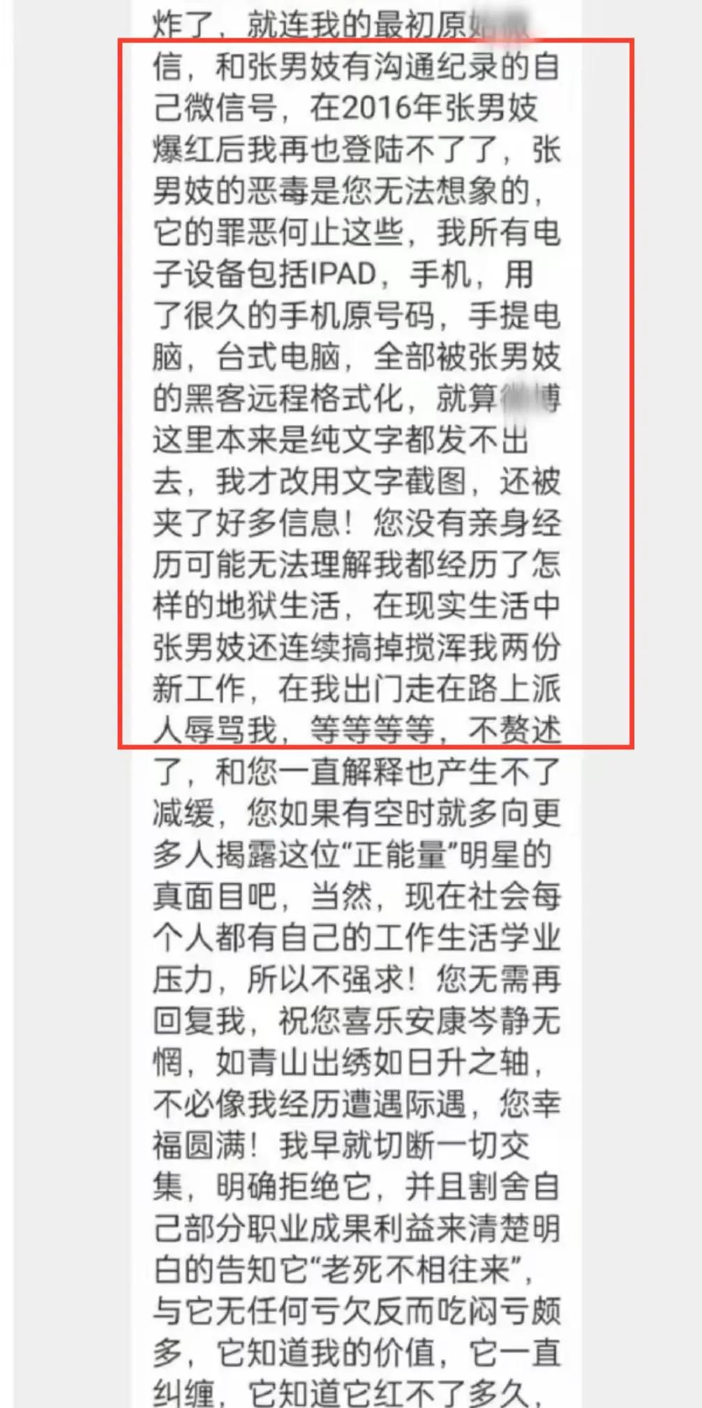 而且张继科还连续搅浑了爆料人两份工作,在他出门走在路上的时候派人辱骂他等。