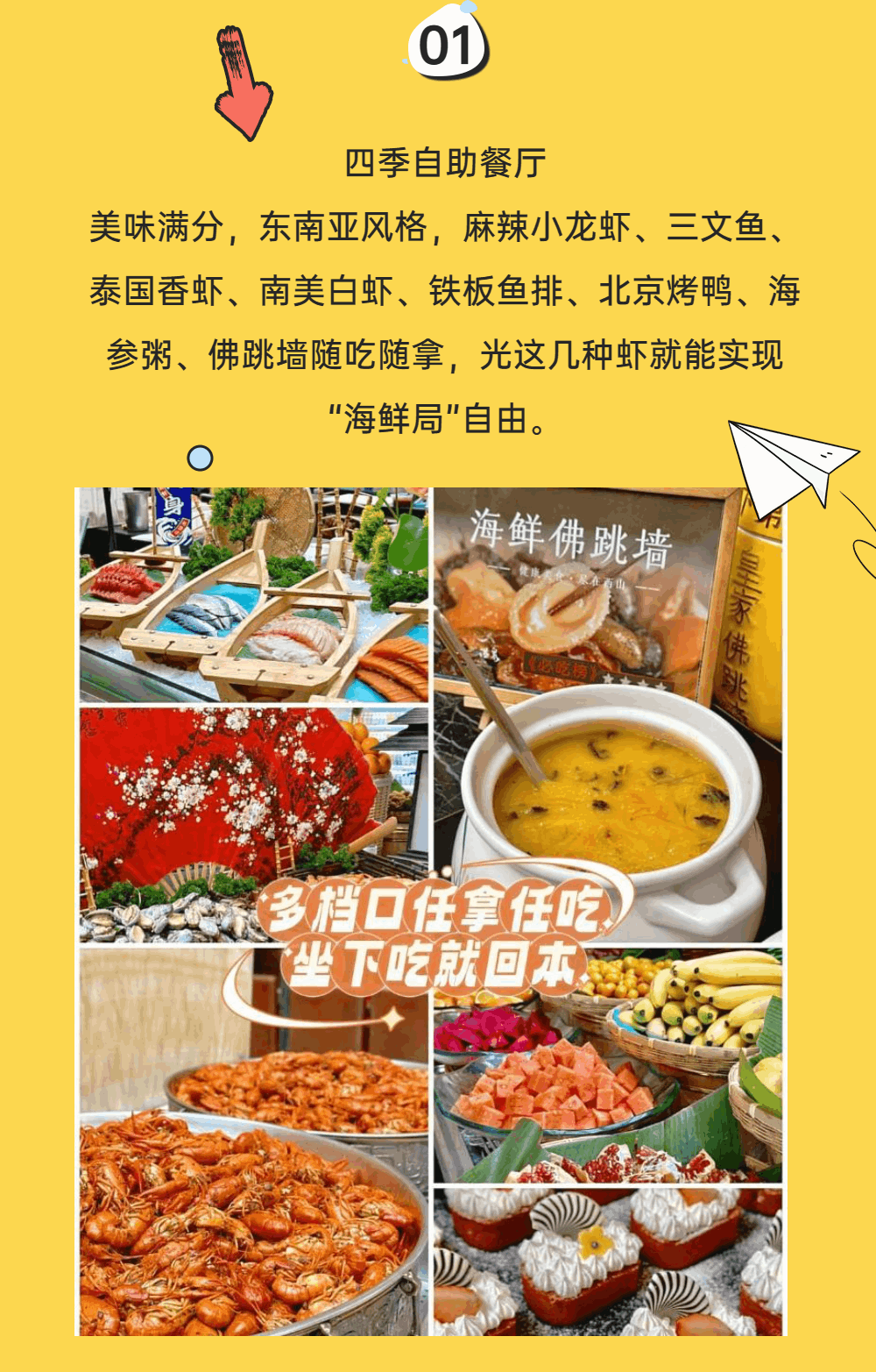 2、2F四季餐厅自助餐1餐(午/晚二选一)+1餐四季餐厅自助宵夜