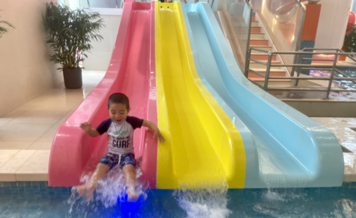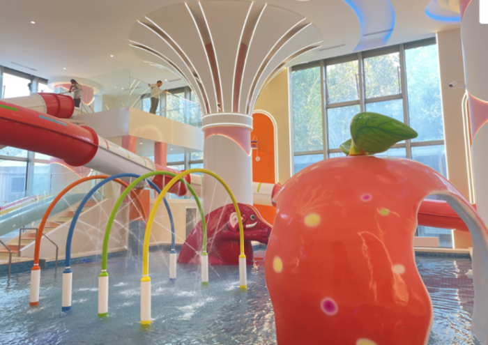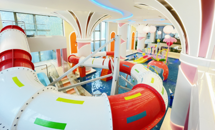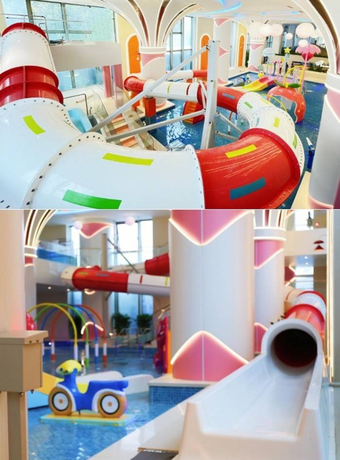 温馨提示:新开嬉水乐园时光隧道滑梯,限1.4米以上,体重180斤以下人群。