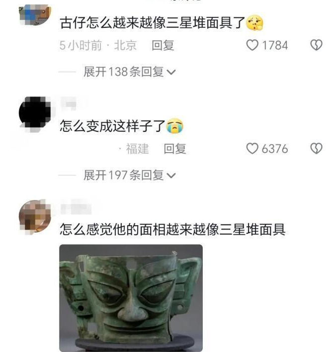 更有网友评论调侃说“怎么感觉这么像三星堆面具”。