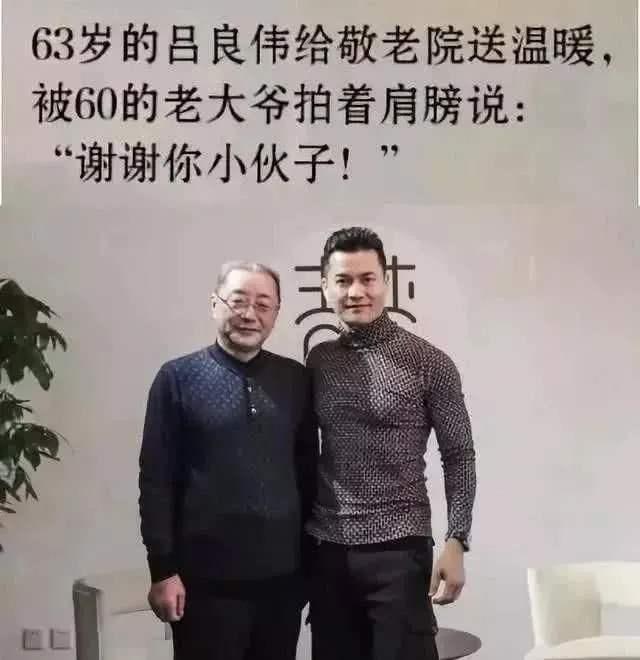 之前网上有个段子说60多岁的吕良伟做公益活动,去养老院探望一位60岁的老人家,那个老人家拍着吕良伟的肩膀说:“谢谢你小伙子”。
