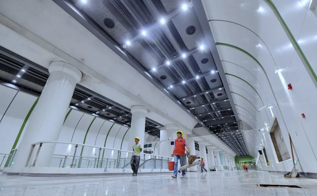 在完成动车调试,实现轨通、电通、信号通、通信通,以及全线冷滑、热滑试验后,17号线北段20列地铁车辆全部到场。8月29日,地铁17号线北段和16号线剩余段开始为期3个月空载试运行,到今年年底,这两条线路将开通试运营。届时,北京轨道交通新增运营里程30.2公里,本市城市轨道交通运营里程将达837公里,处于国内领先水平。今天上午,记者来到17号线北段,从左家庄站乘车体验至天通苑东站。“左家庄站共设4个出入口,到年底将开通3个,C口永久预留。截至目前,这一站的站厅、站台和A口装修完成,工作人员正在进行保洁工作和零散部件的处理。”中铁建大桥局北京地铁17号线09标常务副经理杨德龙告诉记者。从装修上看,左家庄站呈现简约大气的风格。站厅两侧为浅绿色色调、软包设计,中间采用清水混凝土设计。登上列车,记者注意到,17号线北段列车与既有17号线南段相同,列车通体呈蓝黑色调,车内座椅则为橙黄、湖蓝色混搭。