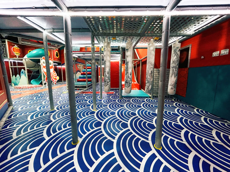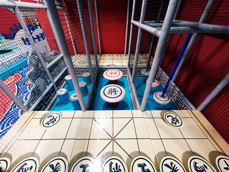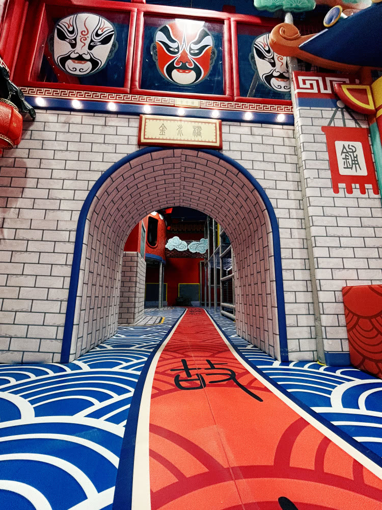 在欧酷世界动力星球国潮主题乐园里,中国传统元素巧妙地融入各类体能锻炼设施,为孩子们打造一个个充满神秘与惊奇的探索空间,呈现出一片独具魅力的乐园景象,步入其中,仿佛回到繁华的古都,感受那厚重的历史气息。