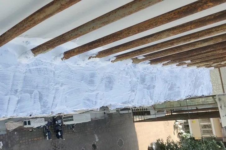 经过多方协调,社区与物业一致认可由维修人员佩戴户外安全绳,从楼道攀爬至漏水点进行检查的方案。社区工作人员表示,从户外攀爬至漏水点的方案虽然更困难,但是居民的诉求不能等。在现场查看后,维修人员对建筑外沿涂刷了新的防水涂料,有效解决了漏水问题。