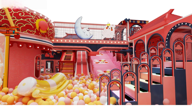 长长短短的多个滑梯连接巨大的海洋球池,当萌娃们被海洋球包裹起来,乐园里充满了他们兴奋的尖叫和放肆的欢笑!