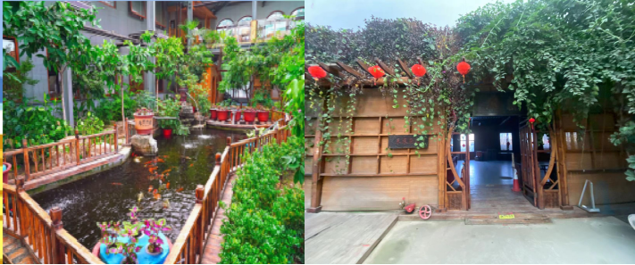 生态馆内植物繁茂,蔓藤缠绕,奇花异草争奇斗艳,溪水、喷泉、植物、动物构成一幅瑰丽的热带雨林景象。游客通过休闲观光-参观鱼菜共生、鱼花共养、北京宫廷金鱼、锦鲤、热带植物等。