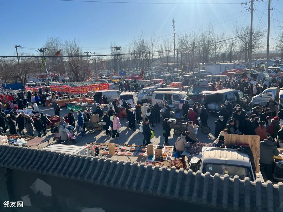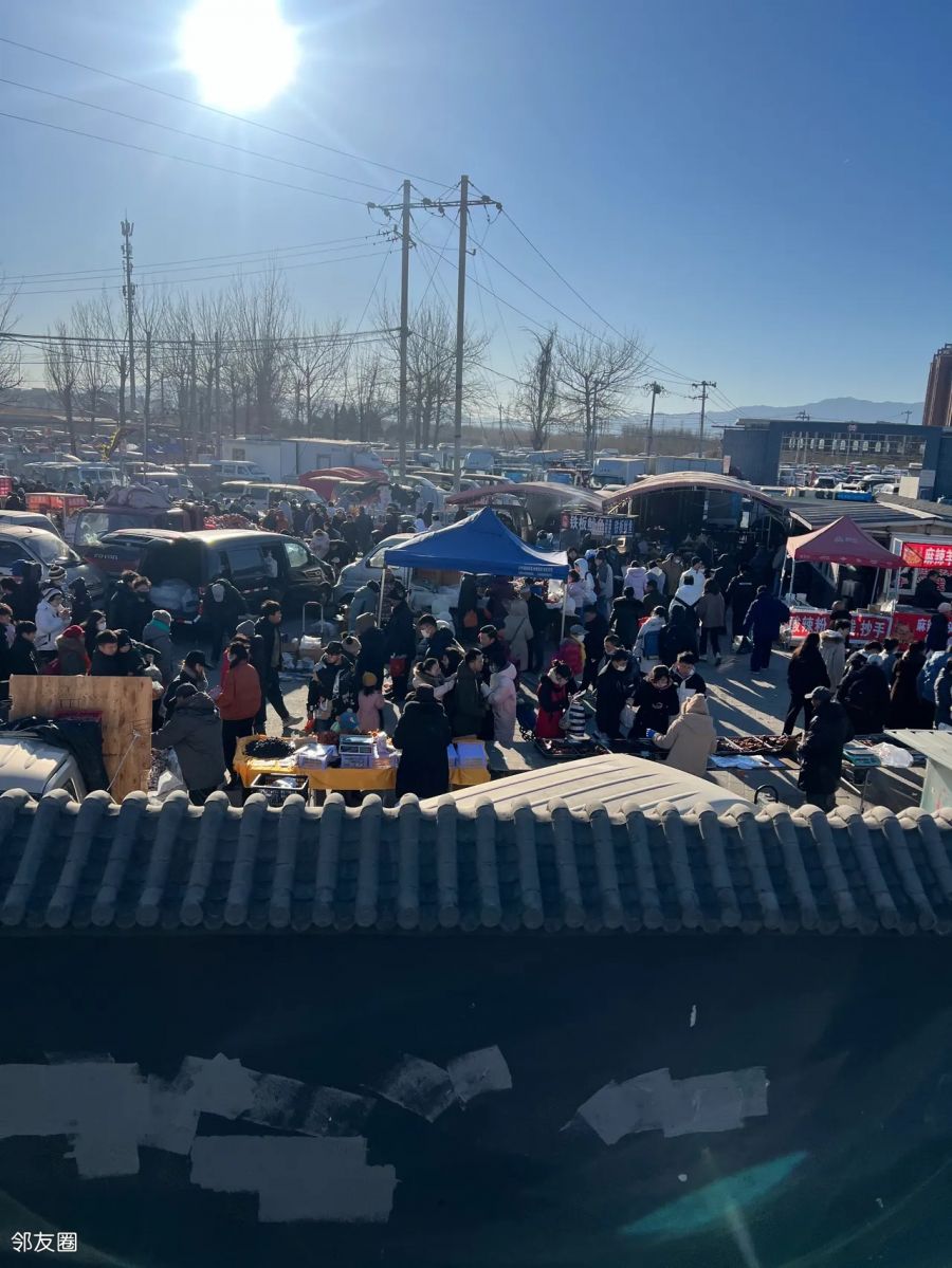 这氛围真的太赞了,这是北京郊区最有烟火气的地方,周一到周五人流量不是很多,周日是人最多时候,快过年了,大家都陆陆续续在置办各种年货。