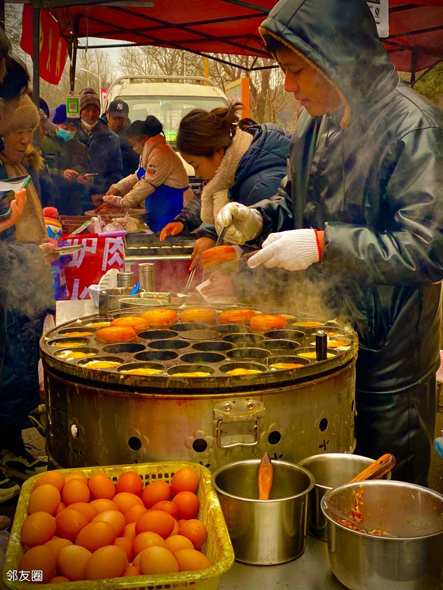 年根儿将至,得知距离东坝最近的大集今天第一天开市,便携夫人和孩子前往一探究竟。坐标就在京城梨园西门、五只猫园区,门口有350公交车(站点是平方桥南),未来每逢农历5和0都有大集,时间到中午十二点,虽然有停车场,但赶上大集不建议自驾前往(拥堵)。虽然大集规模不比常营大集,胜在离家近,且隔壁就是五只猫文创园区(过年有新春游园会,现在还没弄好)和京城梨园公园,赶上好天儿可以一并逛逛。其实就在前天才去过工体大集,结果空手+失望而归,没有一点儿烟火气息不说,各个摊位都弥漫着浓烈的“宰人”味道,给人感觉活生生的来一个宰一个,唯恐你下回还敢再来逛了一圈儿下来,收获可谓颇丰,也吃了个肚儿歪不同于刚说的工体大集,这个大集很接地气儿,烟火气息十足,基本上没看到有空手而归的,接踵而至的每个人脸上都夹带着幸福的笑容,明显给人一种大节将至的感觉,这才是当下该有的氛围。下面就一起来跟着图片逛大集吧(图片有限,评论区还有补充)脐橙10元4斤,颜值超高,口感偏甜口,好吃!(牙口儿不好的小心试吃,别把牙冻掉了)鲜榨甘蔗汁儿,8元一瓶,15元两瓶,非常甜,好喝!(今年终于在这里如愿喝到甘蔗汁儿了)肉蛋堡6元一个,好吃!驴肉火烧7元一个,火烧很大刚出炉很脆,驴肉给的很足,特别值!好吃!比王胖子好。这个油条很大,好吃没得说!芝麻很香。也是我们今天看到排队人最多的。10一斤,一根儿大概11元;炸糕2元一个。未完待续,评论区继续见