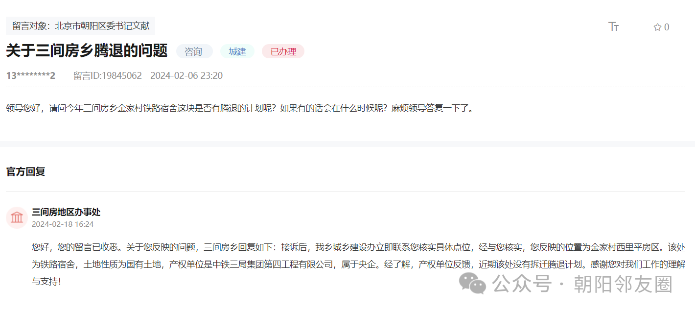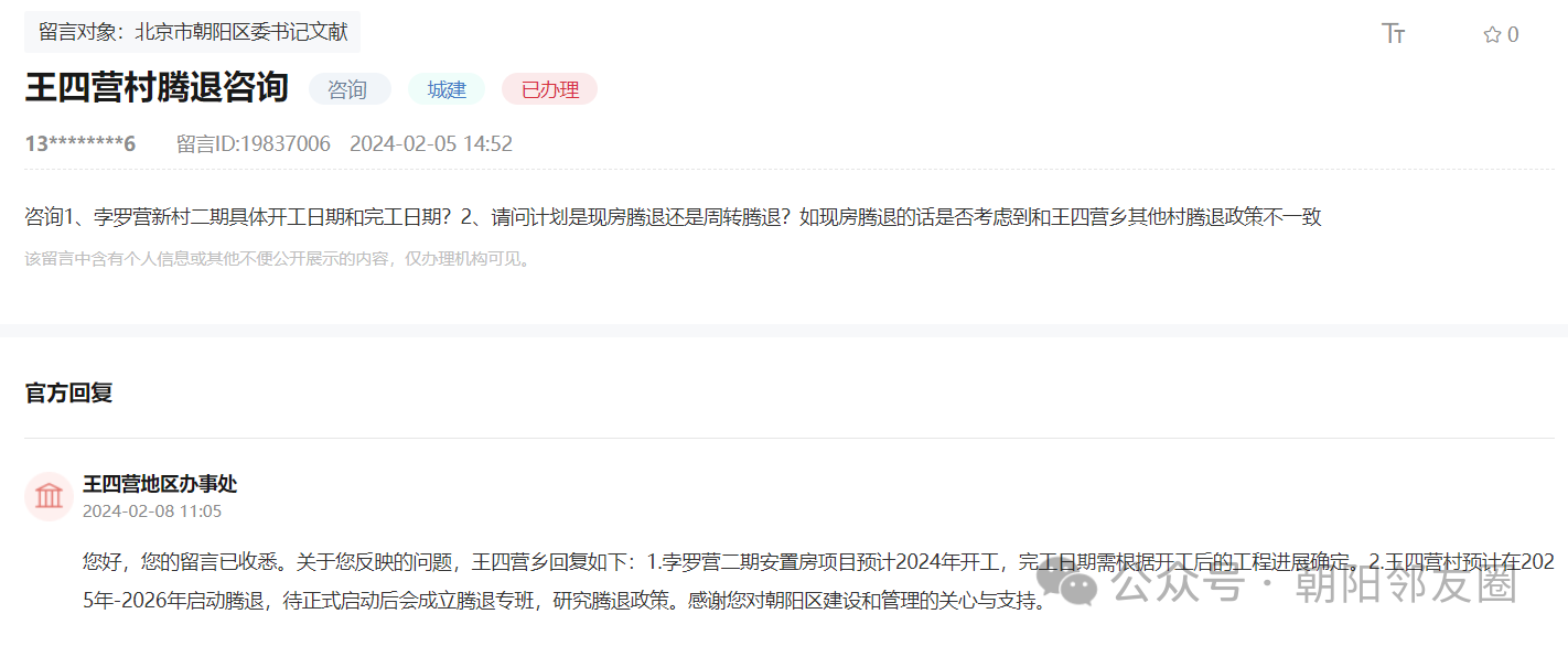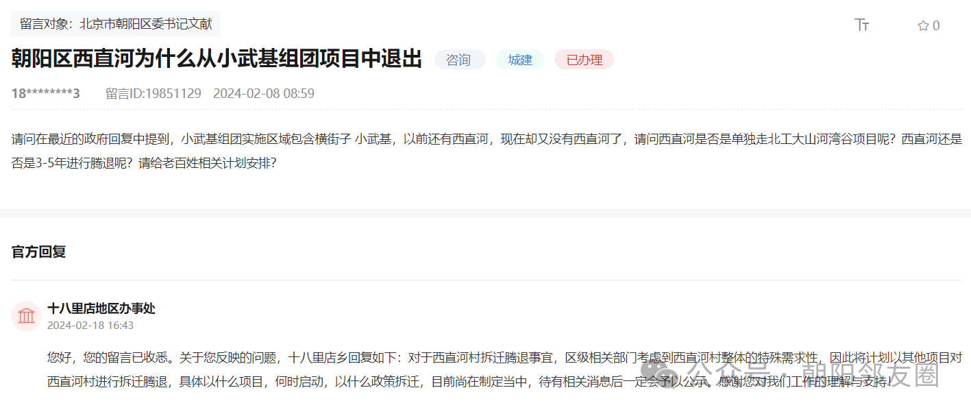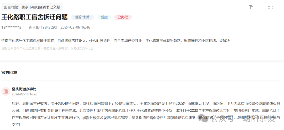 朝阳多地拆迁腾退消息,官方回复(涉及王四营、水碓子、三间房、东风乡等)