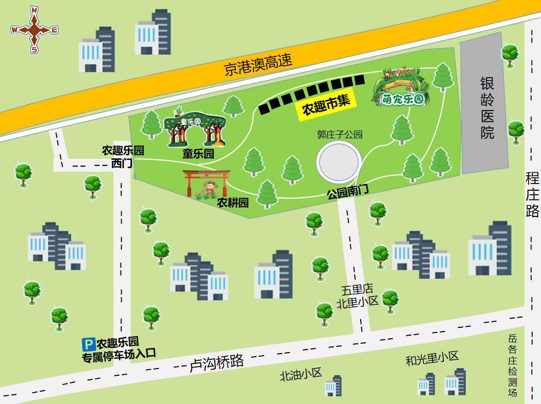 地铁路线:地铁14号线郭庄子站C口出,过地下通道后往东步行约300米,即到农趣乐园北门。