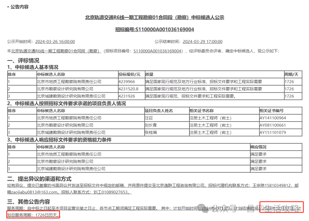 地铁17支线,也就是R6线项目建设一直以来都是昌平人关注的重点。3月26日北京市轨道交通建设管理有限公司公示了北京轨道交通R6线一期工程勘察01合同段(勘察)和(总体总包)(方案设计、初步设计、施工图设计)的中标候选人。