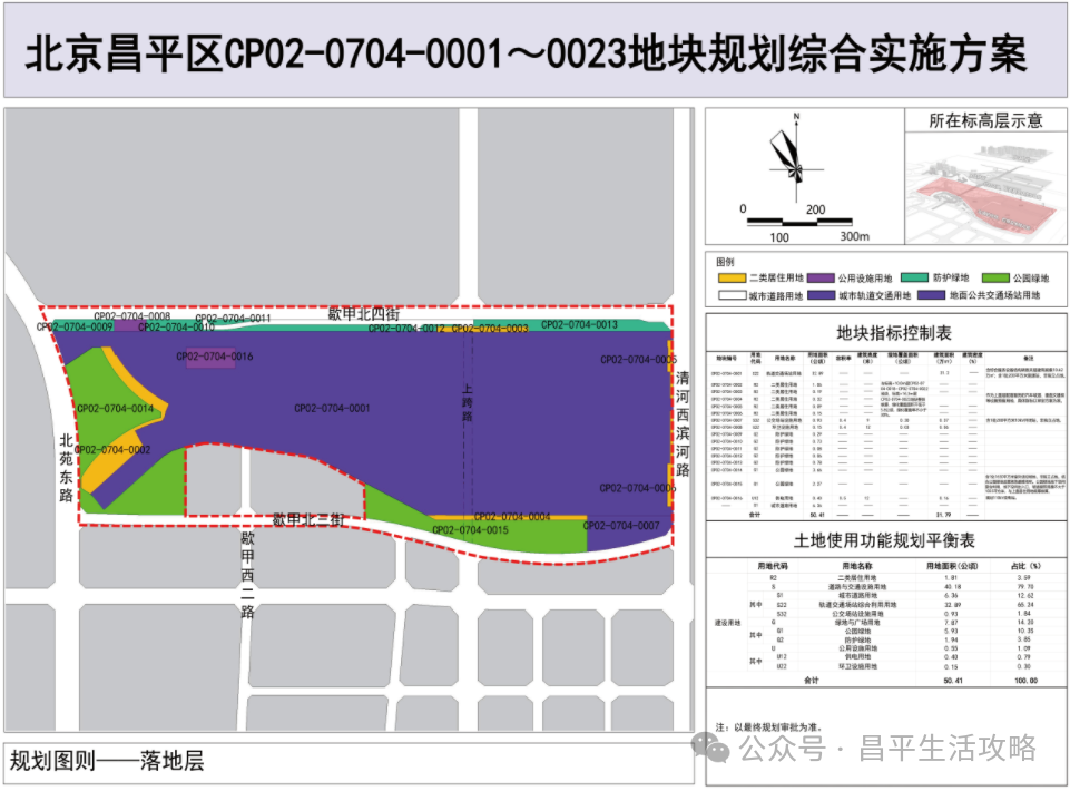昌平区CP02-0704街区0001~0023 地块位于北七家镇歇甲组团CP02-0704街区范围内,项目规划实施范围东至清河西滨河路,南至歇甲北三街,西至北苑东路,北至歇甲北四街,总用地面积约50.41公顷,总建筑面积约51.53万平方米。项目位于北苑东路以东,地铁天通苑东站北侧,自去年12月30日地铁17号线北段开通以来,相信大家对该地有了更多了解,项目属于北七家镇歇甲庄地块,东侧是清河以及温榆河公园、来广营北路。这边区域公分为上中下层,下图是底层规划,大面积紫色部分就是轨道交通17号线工程歇甲村车辆段,周边分布少量公共绿地、防护绿地。