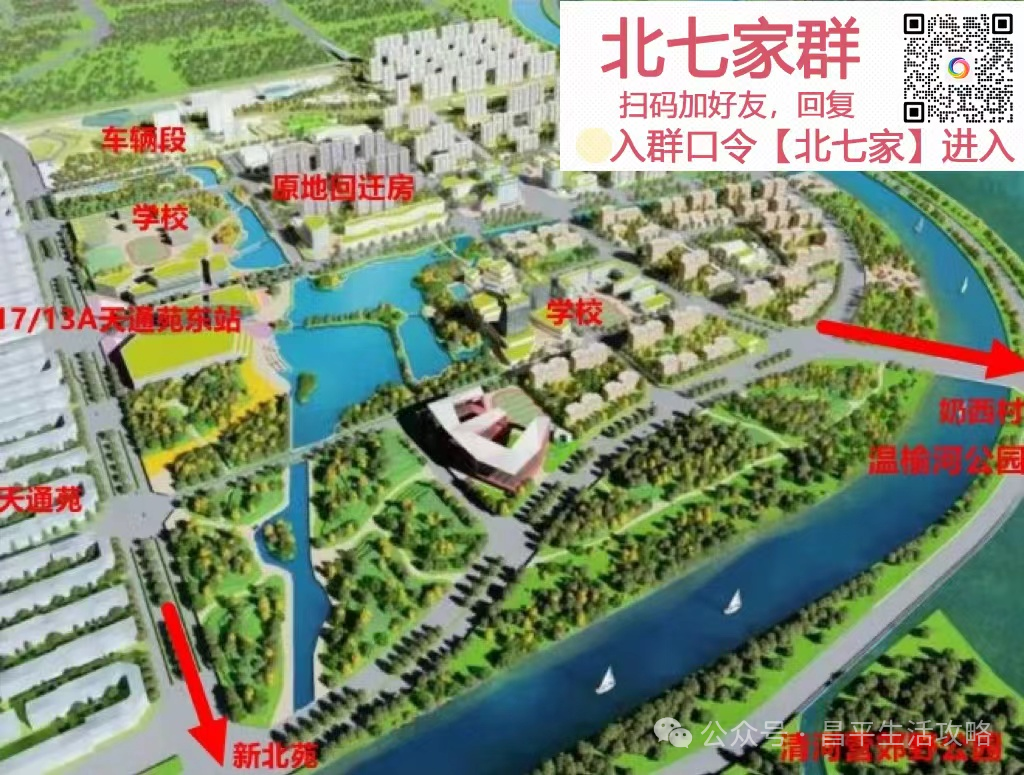 我们再来结合之前发布过的歇甲地区规划效果图看,图中左上方就是本项目“车辆段”位置所在,用房地产商们的话说,歇甲地块不仅吃到的是天通苑的红利,更能享受到朝阳的红利,毕竟这里距离朝阳来广营地区也仅隔了一条清河。