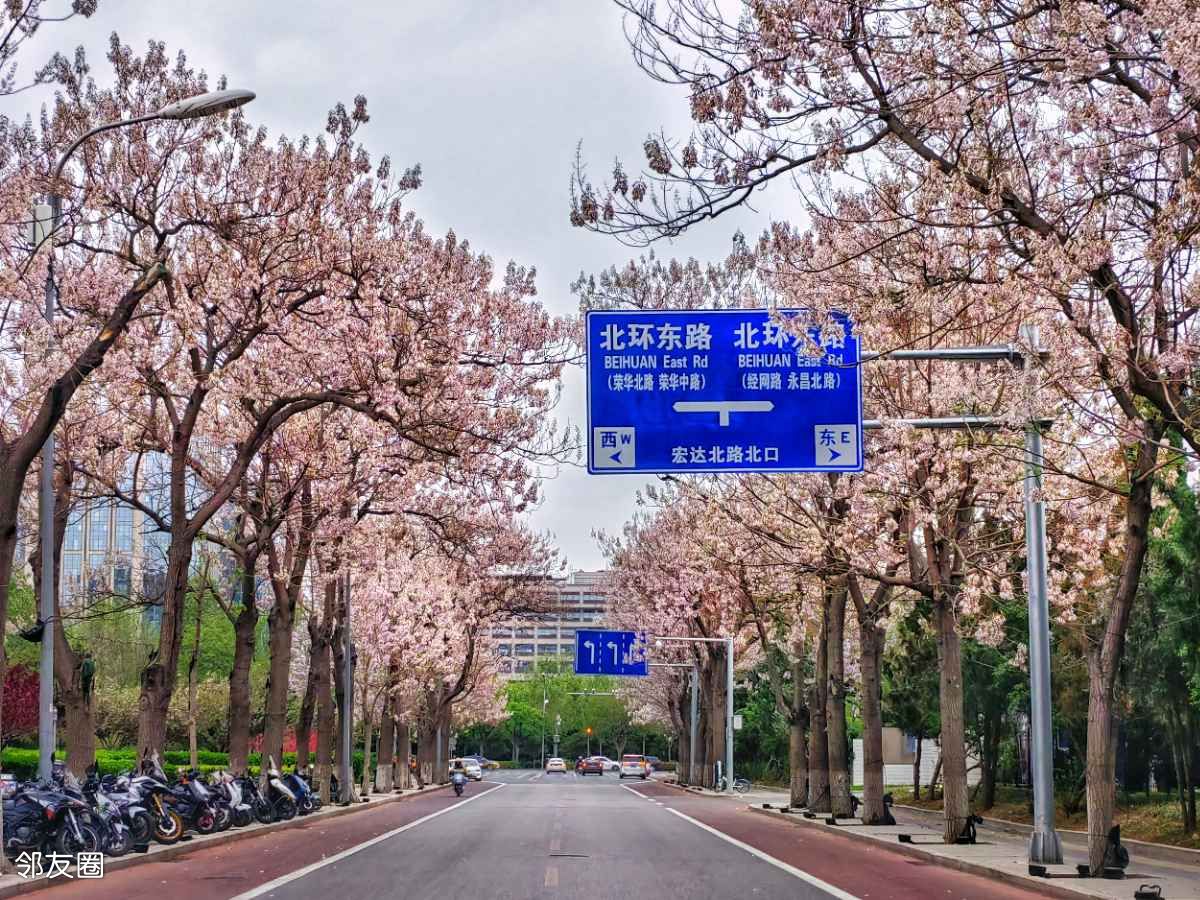 每年4月中旬,位于北京经开区宏达路两侧的1000多棵泡桐树会如约盛开,成为吸引大批市民前来拍照的“泡桐大道”