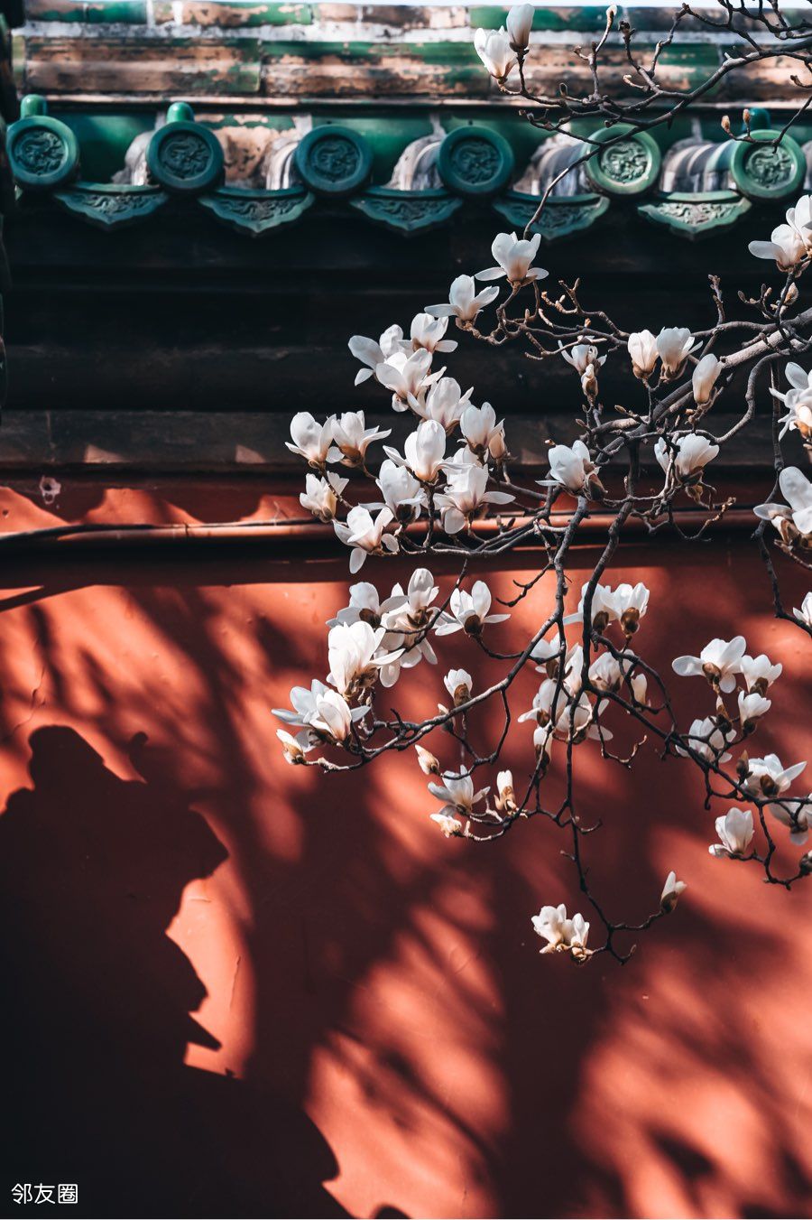 春意盎然的季节里,玉兰花以其独特的美丽装点着斋宫。洁白如玉的花瓣在阳光的照耀下熠熠生辉,搭配宫墙纯厚的红,凸显出古建与花的和谐之美。