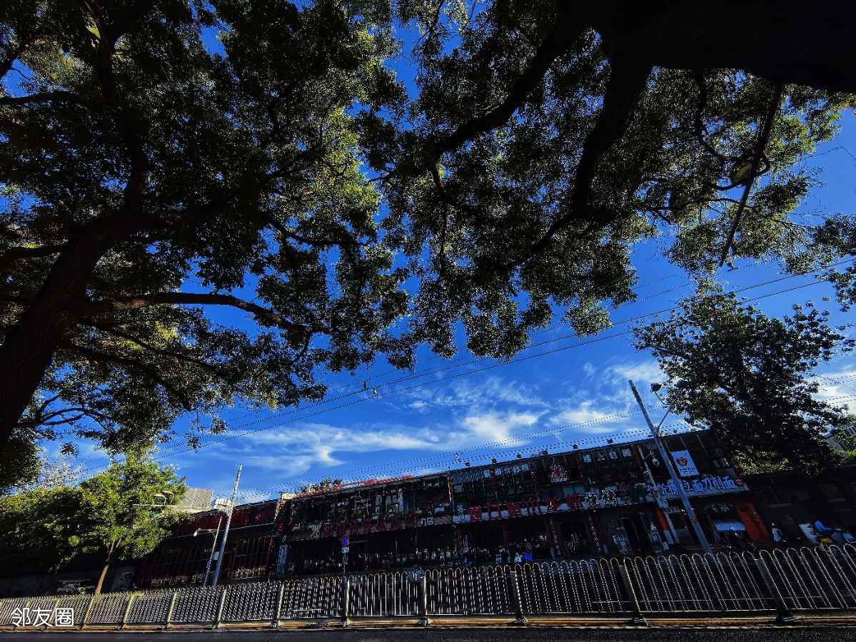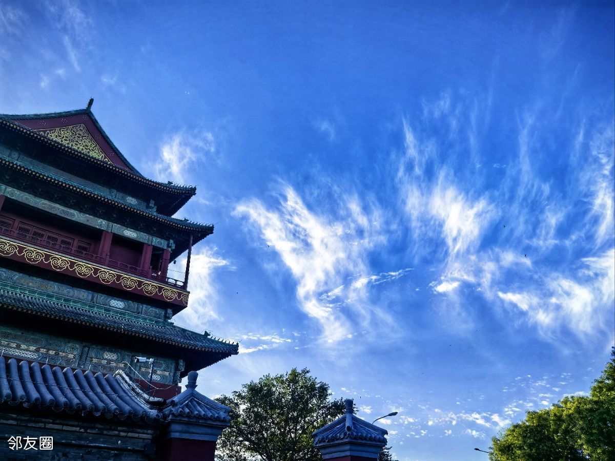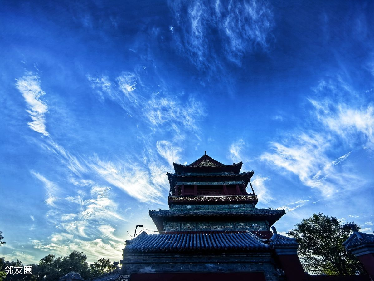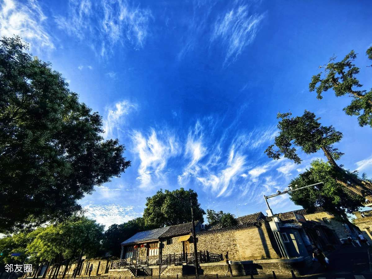 自然的画布上,古建筑是那最生动的一笔。蓝天白云下,红绿相间的屋檐,与周围的树木和谐共存,构成一幅岁月静好的画面。