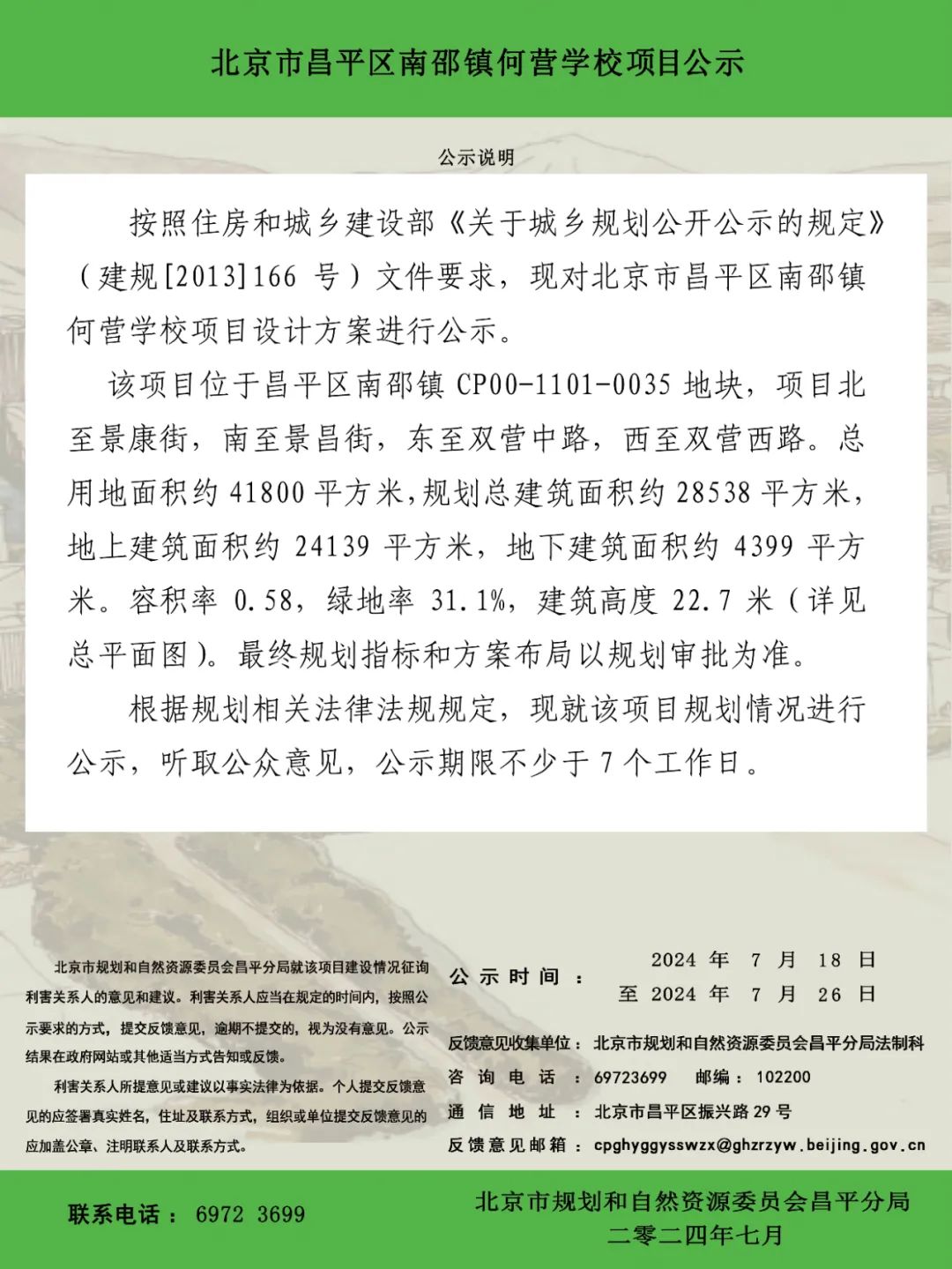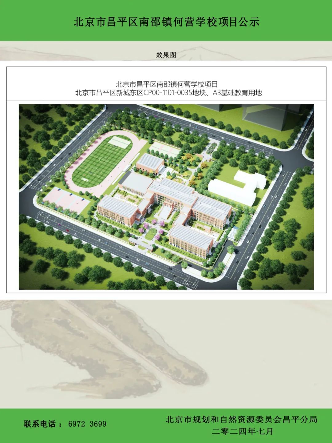 按照住房和城乡建设部《关于城乡规划公开公示的规定》 (建规[2013]166号)文件要求,现对北京市昌平区南邵镇何营学校项目设计方案进行公示。