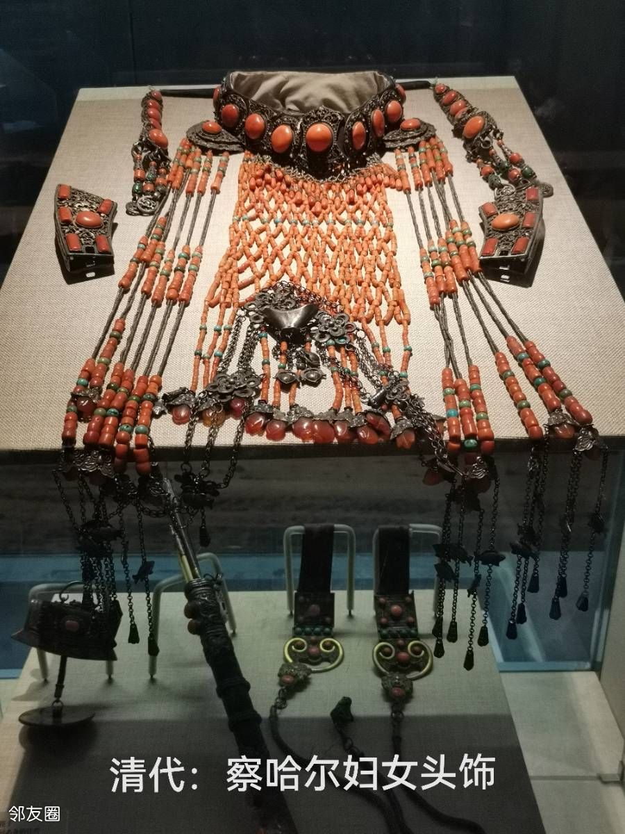 在博物馆的展厅中,我仿佛与古人进行了一场跨越千年的对话。那些精美的文物,如出土于乌兰察布凉城县石虎山的新石器时代的壶、双耳罐;出土于察哈尔右翼后旗的东汉时期的三鹿纹金饰牌;魏晋时期的鹿角金步摇冠;大唐时期的鸳鸯纹金花银碗;大唐时期的瑞兽葡萄镜;元代的开光花卉高足金杯;清代察哈尔妇女漂亮的头饰;还有察哈尔男人腰间必备的挂件……等等,它们不仅仅是历史的见证者,更是文化的传承者。每一件文物背后,都隐藏着一段段动人的故事和深厚的历史底蕴。