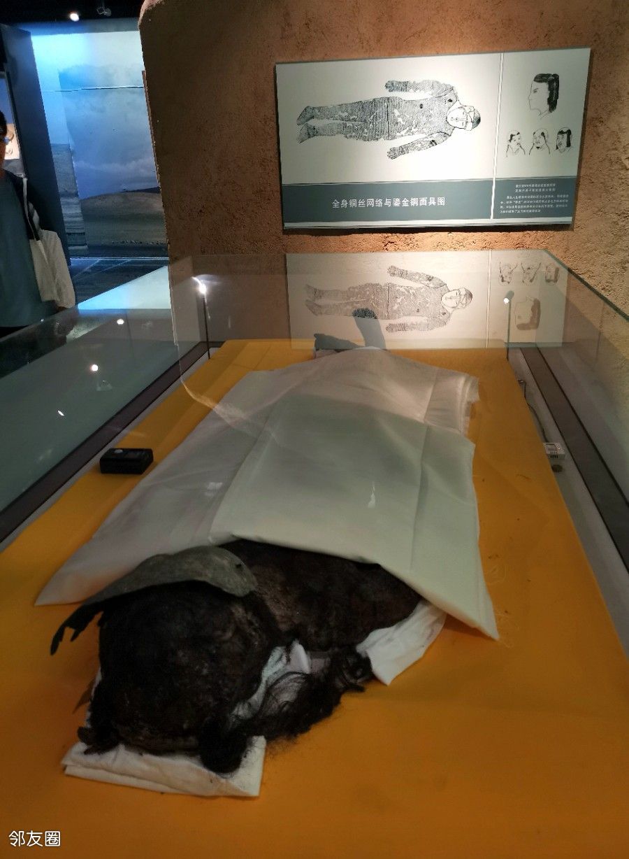 而最让我印象深刻的,莫过于乌兰察布博物馆的镇馆之宝,那位辽代时期的25岁大美女了。她静静地躺在展柜中,面部覆盖着金饰面罩,身上穿着铜丝编的铜缕衣,雍容华贵中透露出一丝神秘的气息。