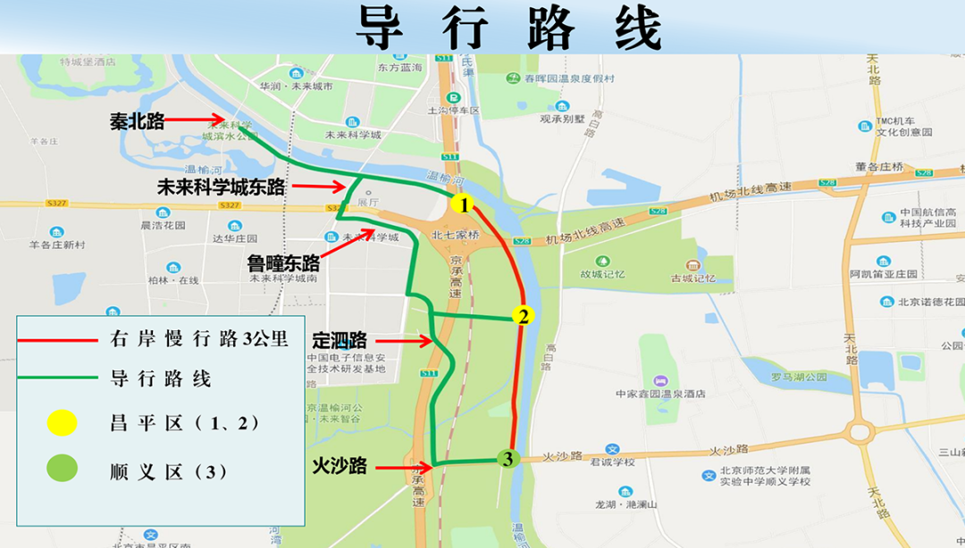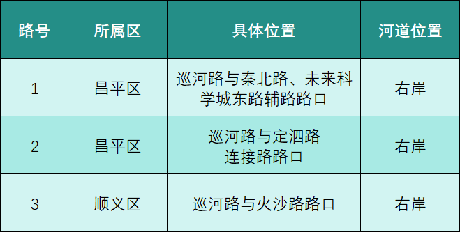 3号位于温榆河右岸巡河路与火沙路路口,可以通过火沙路、定泗路导行。