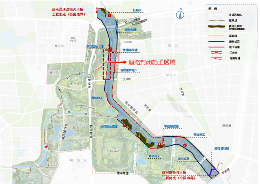 今天起,工程开始对温榆河右岸(京承高速温榆河大桥至火沙路路口)路段进行封闭施工,其中涉及顺义区巡河路与火沙路路口,居民们可以通过火沙路、定泗路导行。