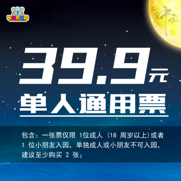 39.9元,单人票(平日、周末、中秋国庆通用)