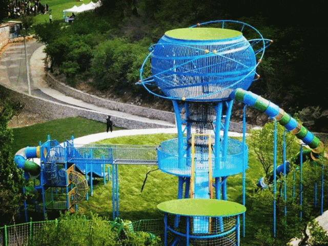 游乐园拥有丰富多样的儿童游乐设施,适合各个年龄段的孩子。小朋友们可以在安全、有趣的环境中尽情嬉戏,尝试刺激的彩虹滑道、峡谷漂流和高空滑索,或是挑战10多米高的红色要塞拓展基地和攀岩。