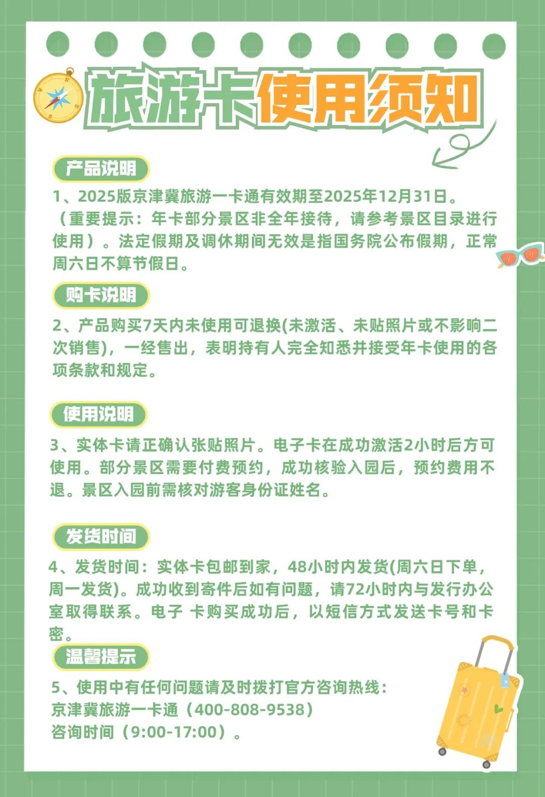 ⭐一卡通权益:免门票不限次;五一,十一、春节假期期间持卡无效