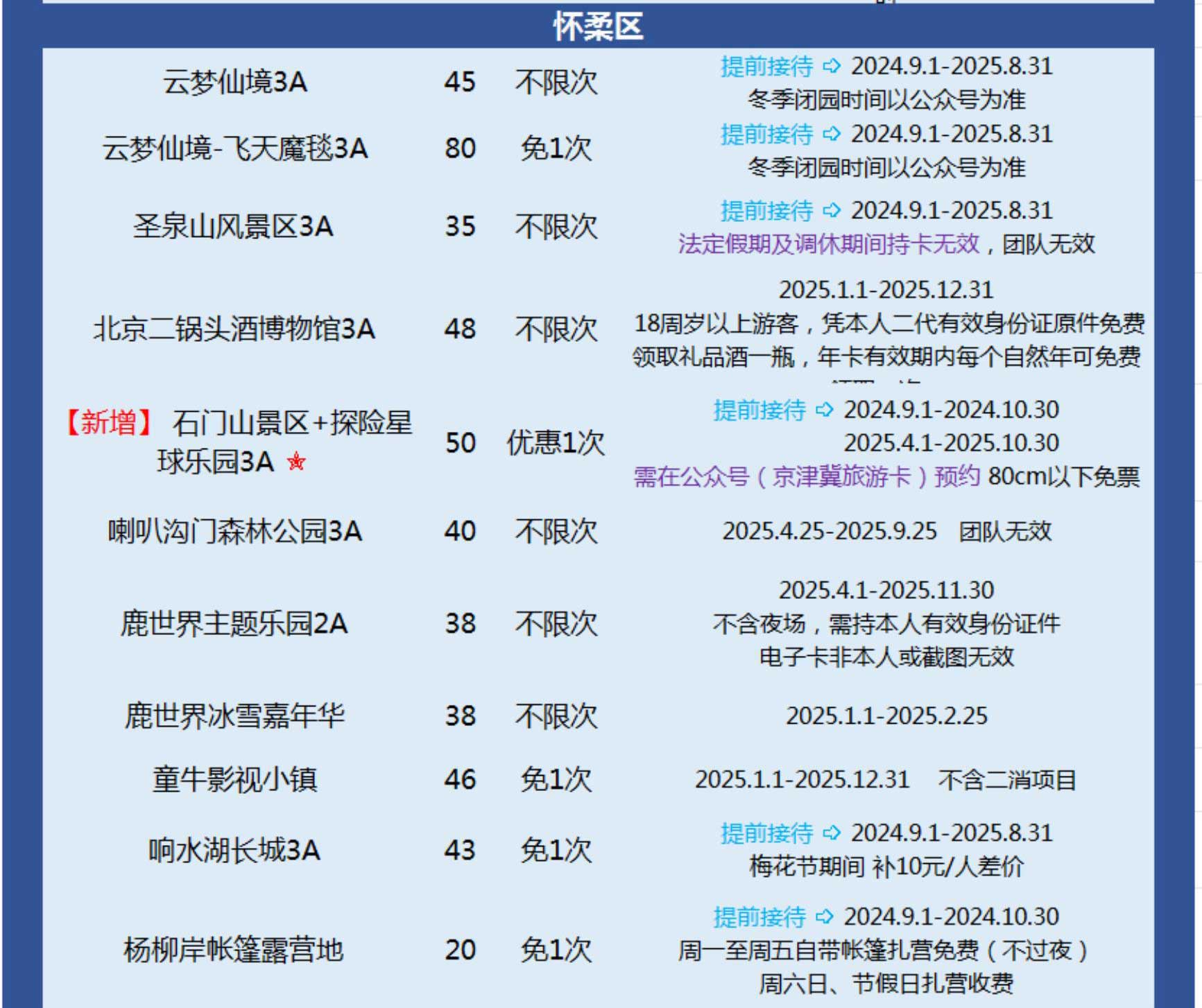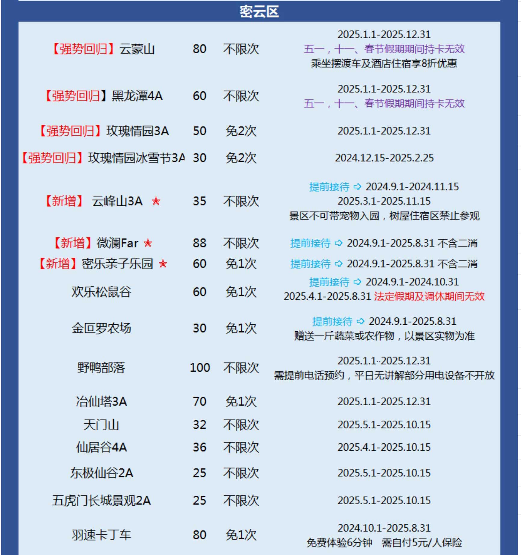 ⭐一卡通权益:精品、贵宾免费,普通优惠;法定假期及调休期间持卡无效