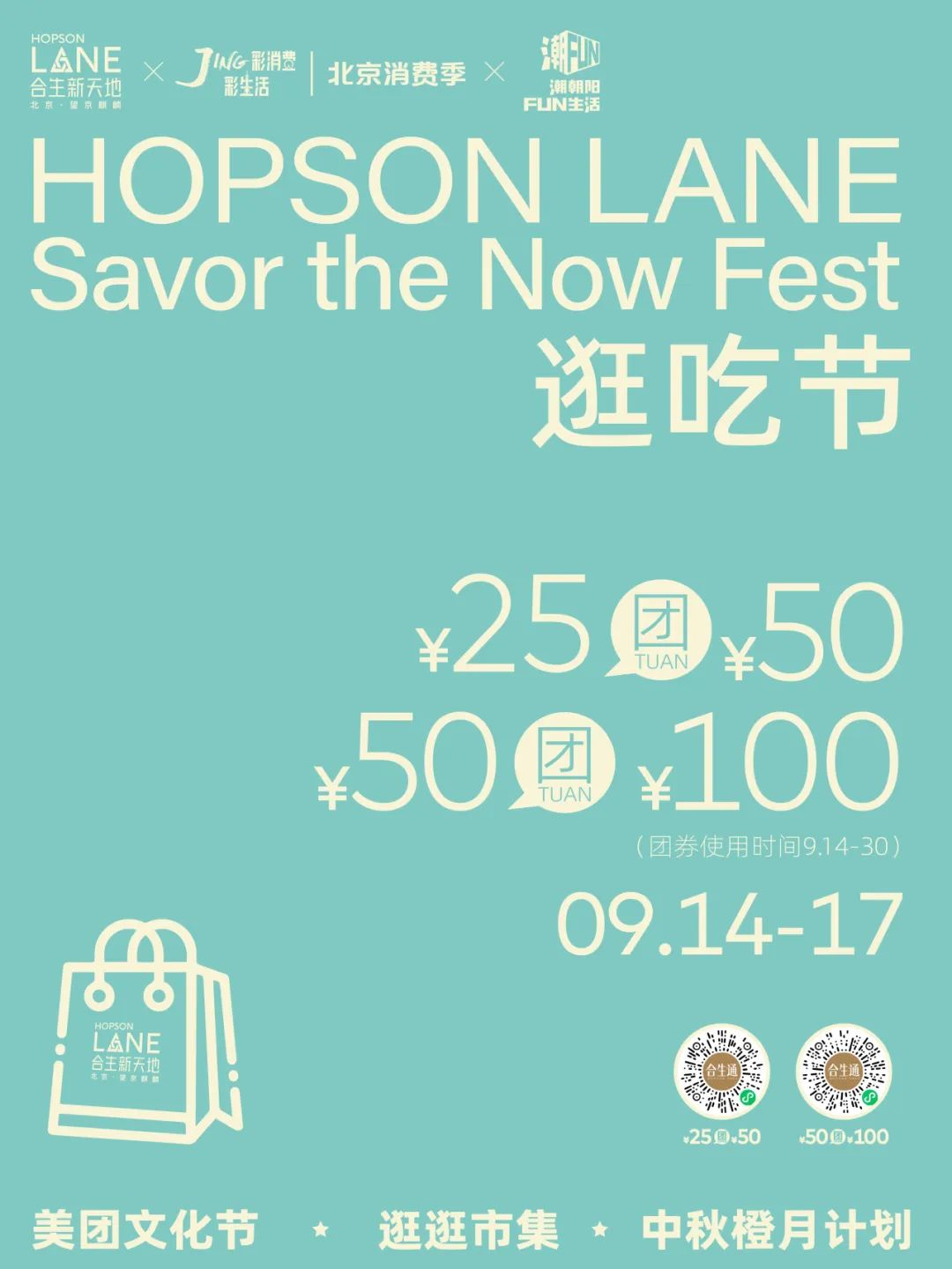 时间:9月14日-9月17日,¥25团¥50、¥50团¥100