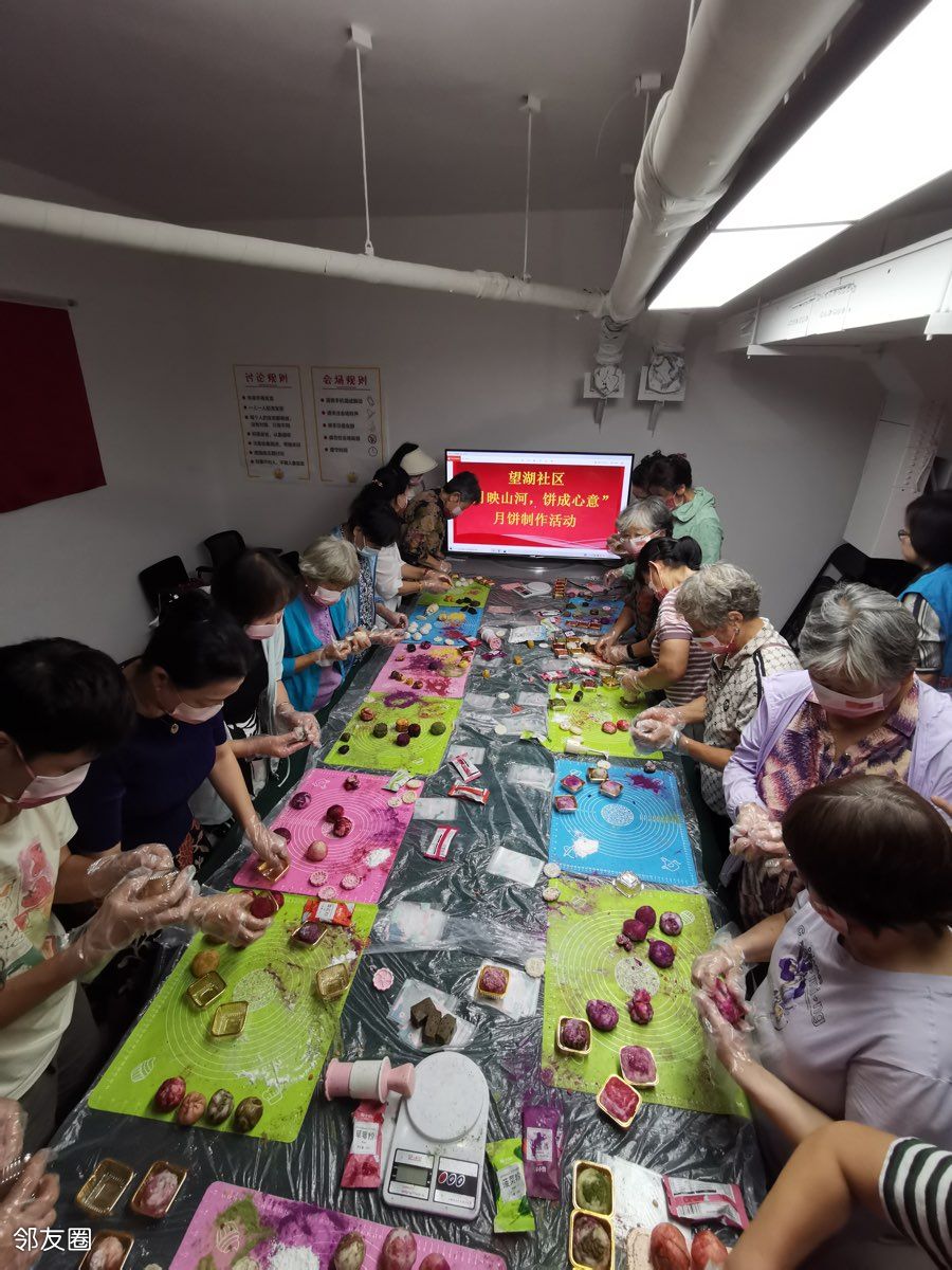 望湖社区组织志愿者做月饼。月饼好不好吃不知道,活动气氛很活跃。制作过程体现了志愿者们奉献、友爱、互助、进步的精神。