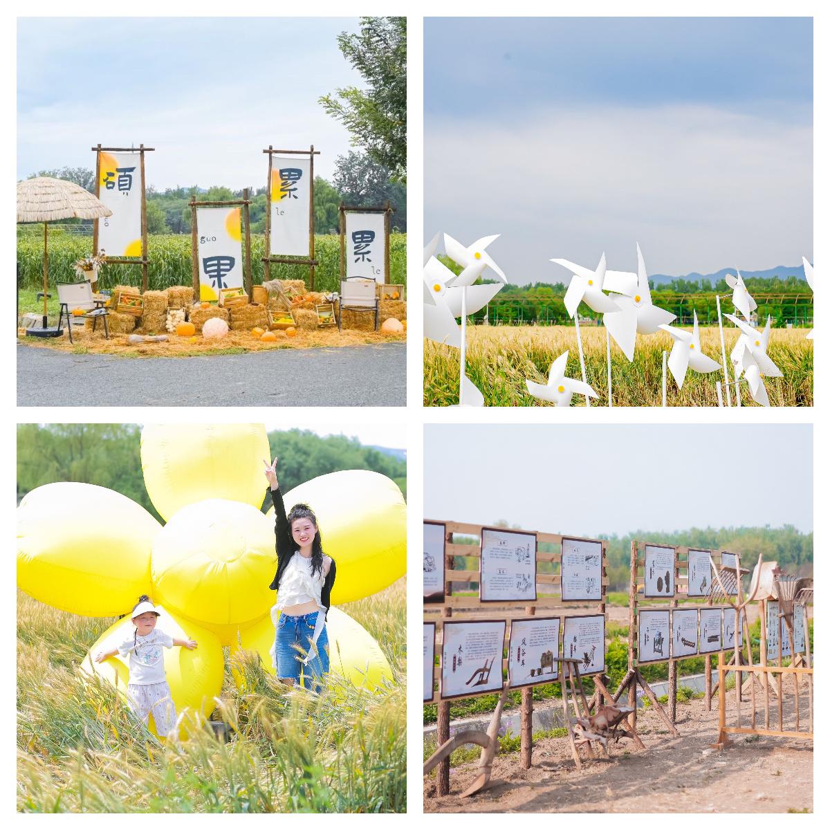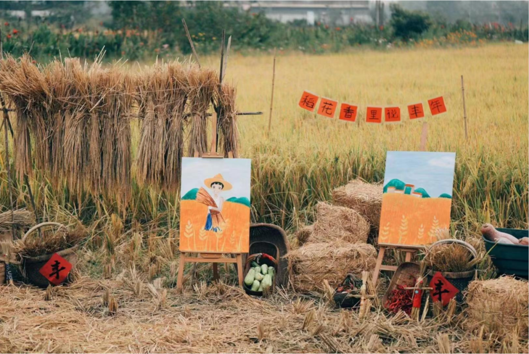 丰收的美丽乡村风景,一片丰收喜悦景象,现场布置了飘纱装置、稻草人装置、稻田里的诗词展、米的N次方展,超多超美丽仪式感满满的丰收艺术装置作品,形成了独特的稻田大地艺术景观,等你来“打卡”!