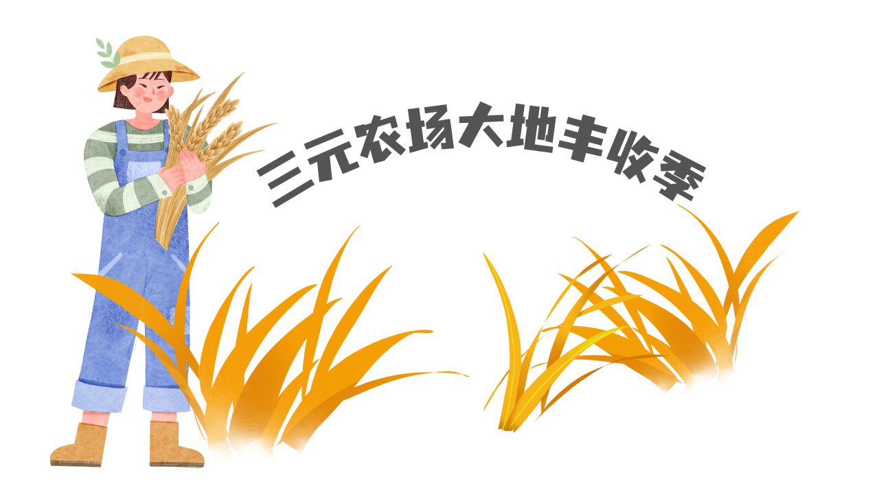 2024三元农场大地丰收季,如约而至!占地千亩的农场,种植有水稻、糯玉米、南瓜、向日葵等等农作物。这个秋季所有的作物陆续成熟。农场里是稻浪翻滚,瓜果飘香,一片丰收的繁忙景象。邀请热爱劳动的你走进田野之中,体验劳动,收获快乐和沉甸甸的果实。