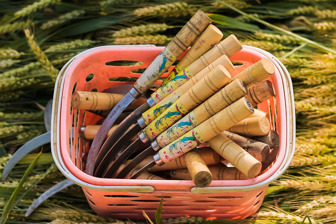 PS: 农场给每个参与者都配齐了手套和小镰刀,割水稻前会统一讲解注意事项,教会割水稻的步骤。为了保护新手,贴心的给我们准备了mini小镰刀,锯齿稀疏,适合收割,即使你第一次使用,也不会伤到自己呦。