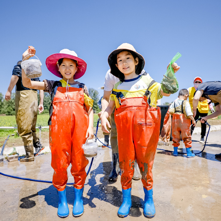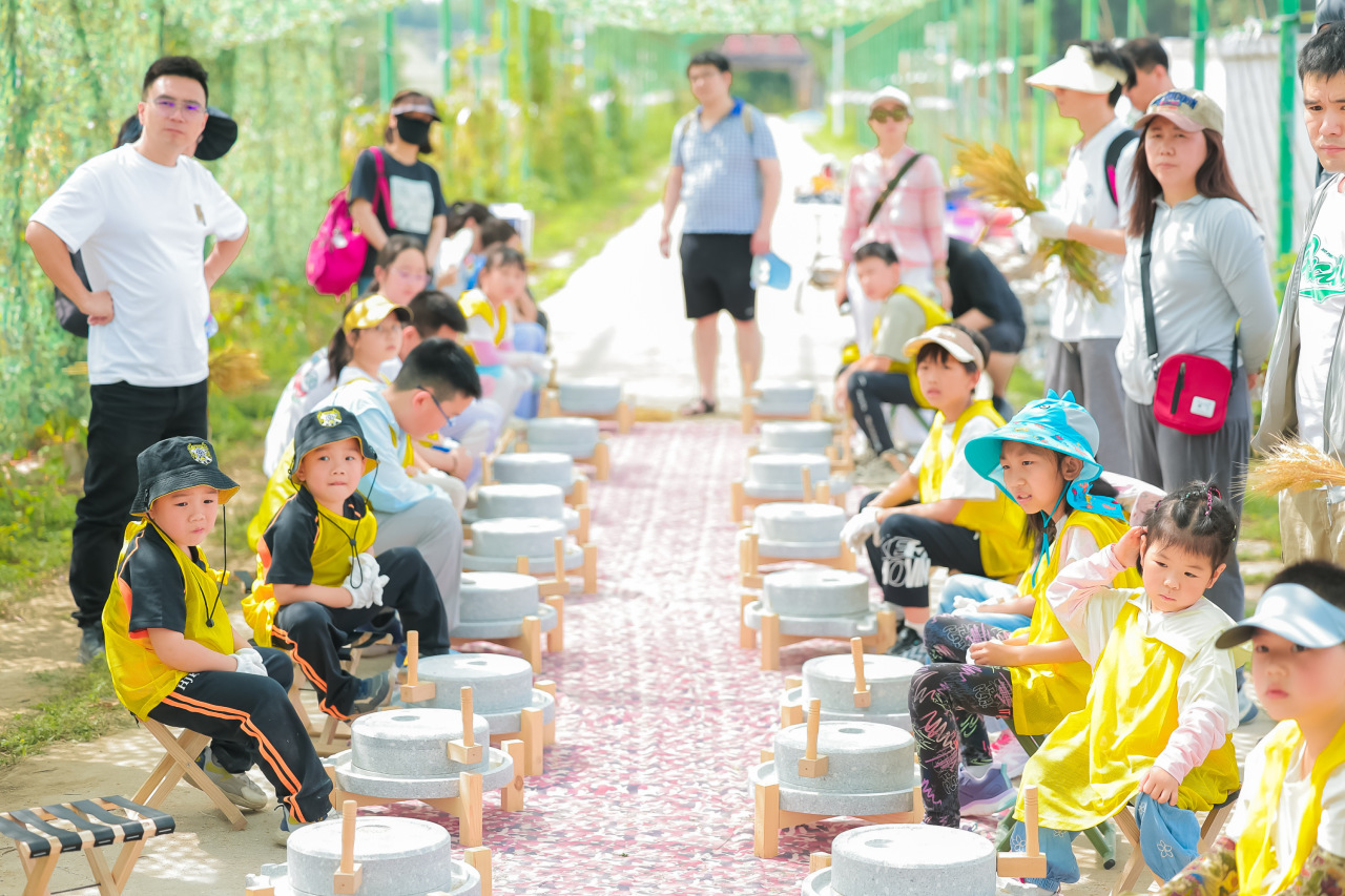 农场,在田间地头开启小课堂,观摩古代水稻劳动工具。在自然劳作中获得研学的乐趣和启发,让小朋友清晰地了解到水稻生长的全过程,理解食物的本质。和小小米粒一起成长,重新认识每天在吃粮食,感受稻作文明发展历程,认识稻作即是生命。