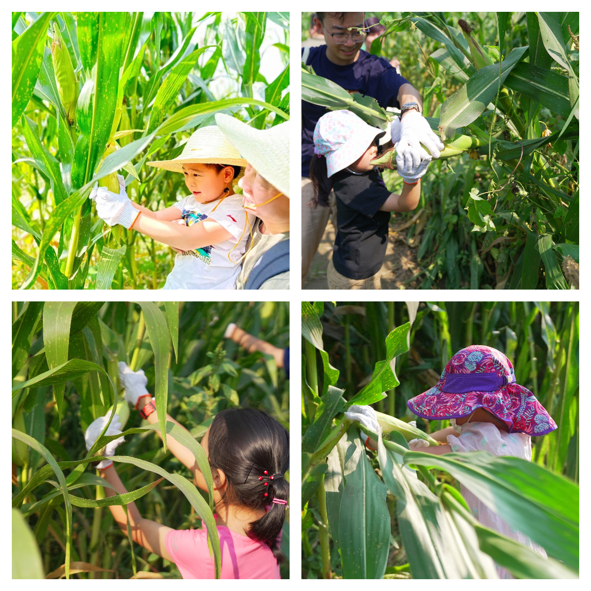 农场种植百余亩甜糯玉米,坚持传统种植,不施化肥农药,自然生长。孩子们走进绿油油的玉米地,亲手采摘新